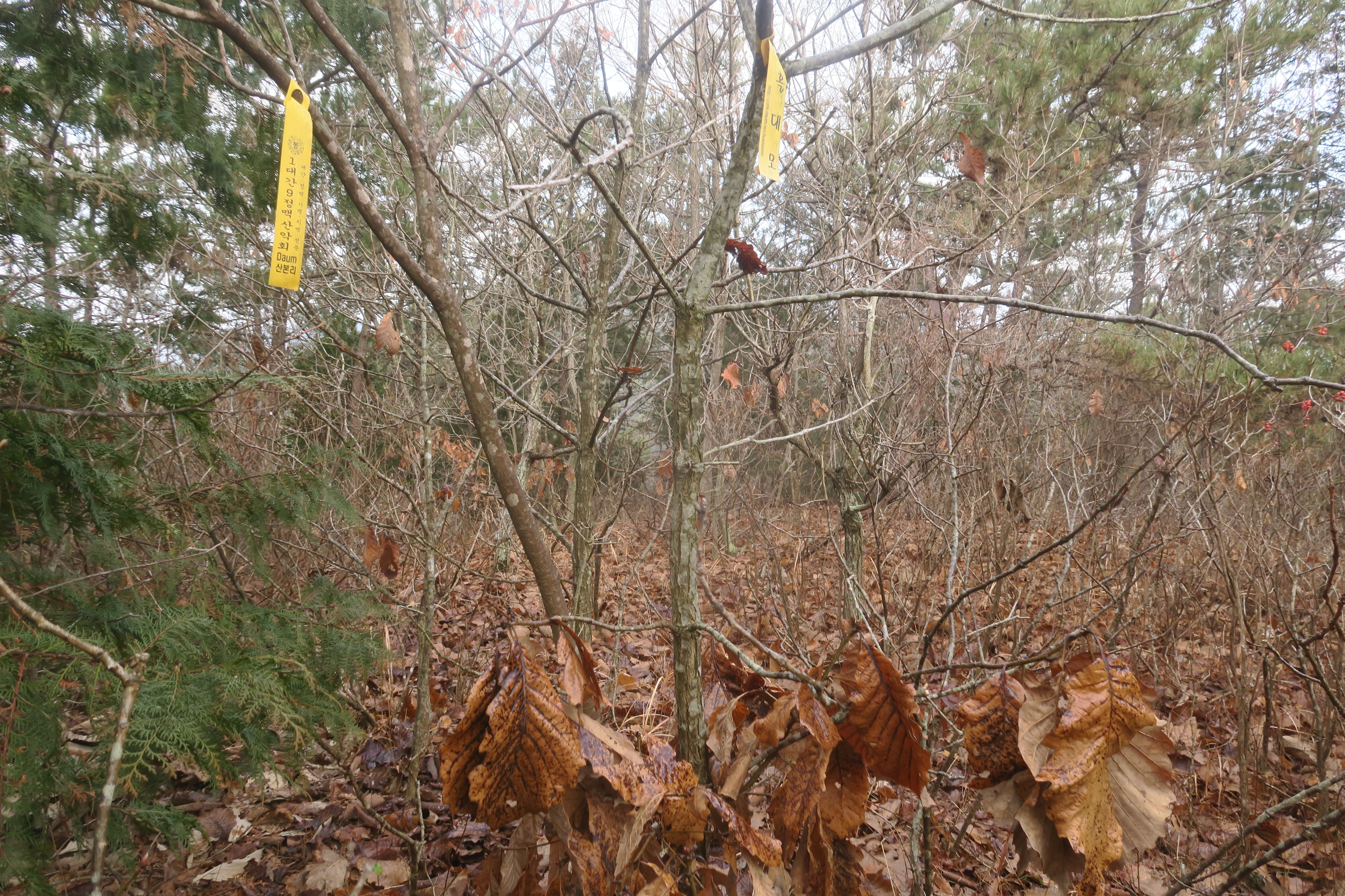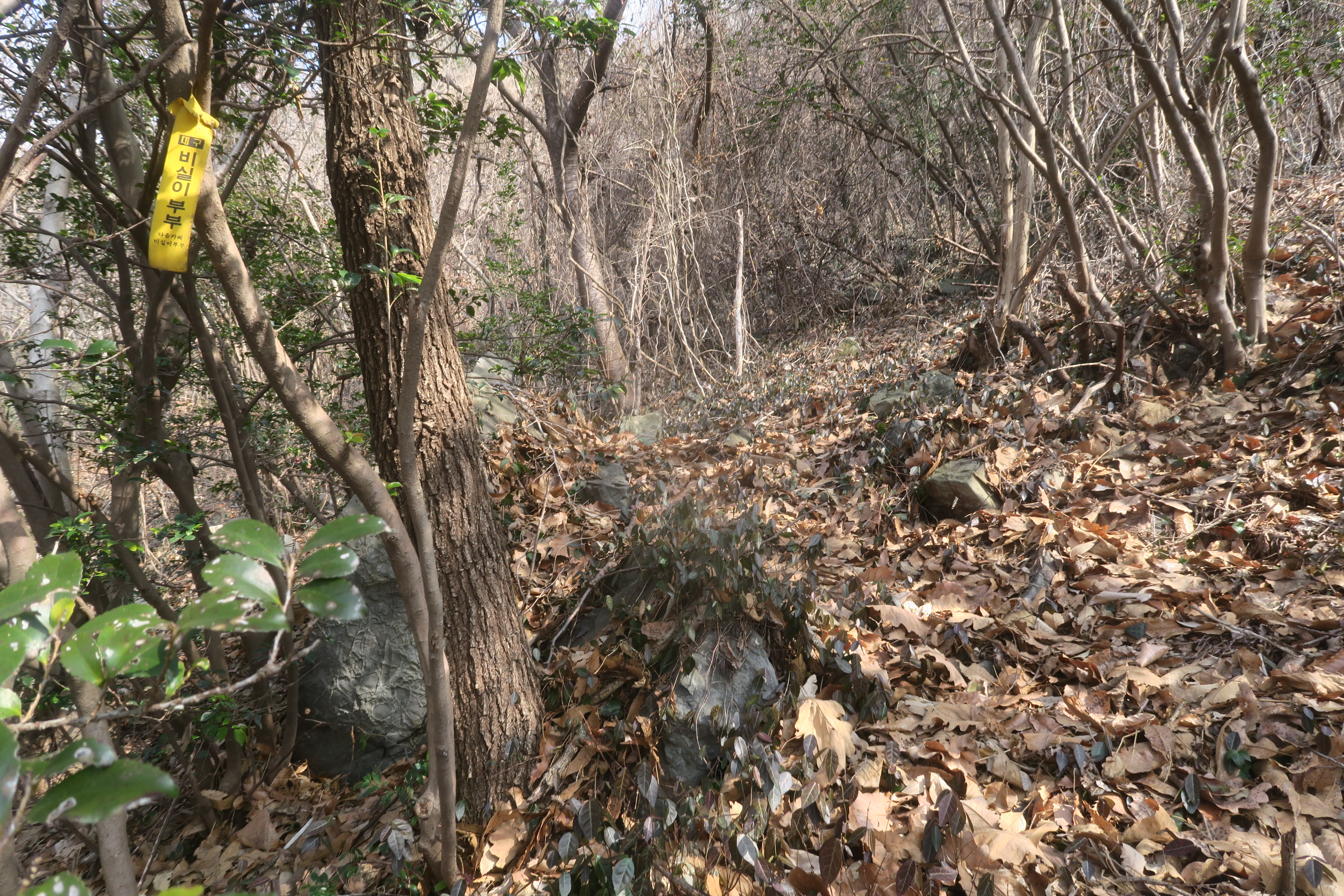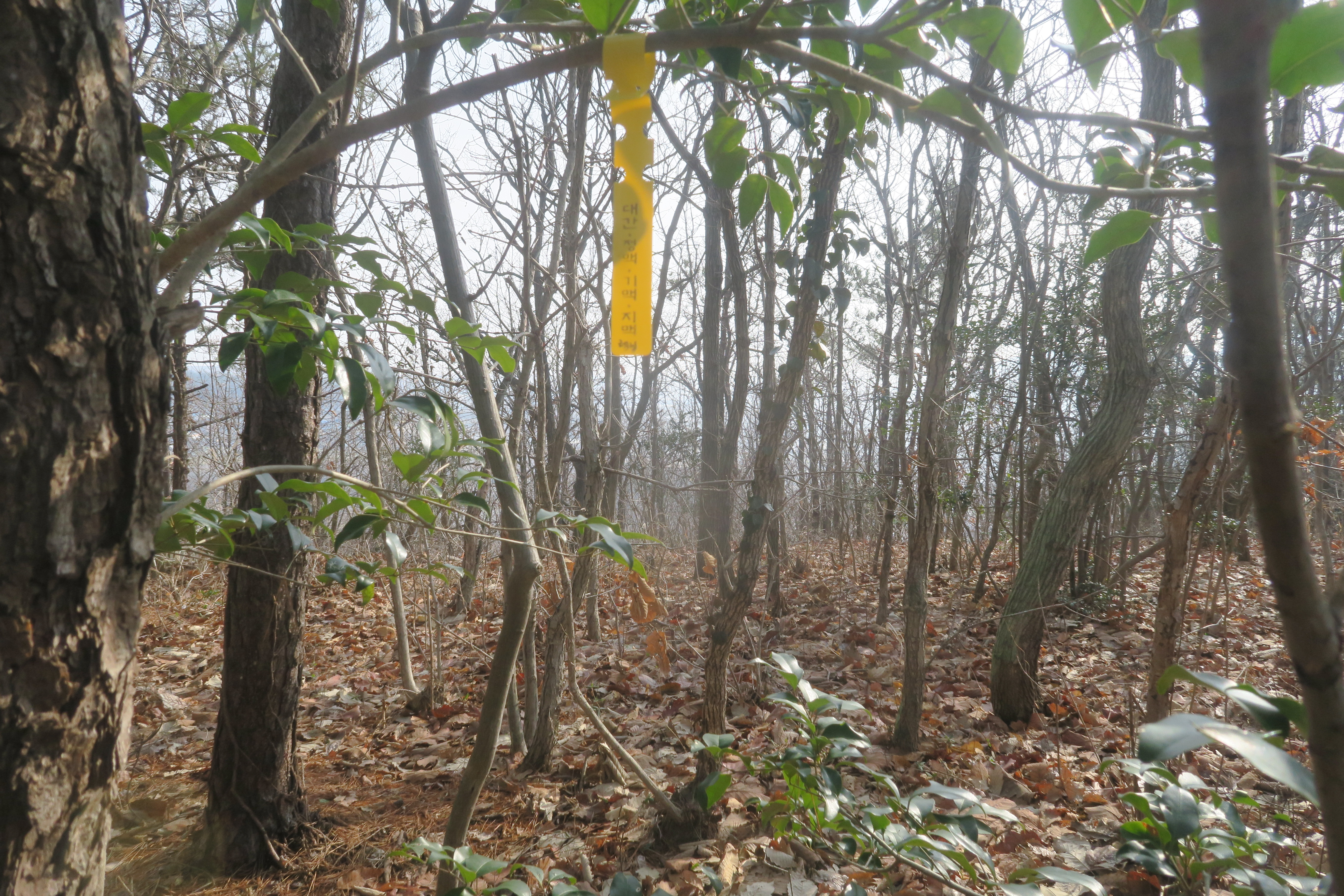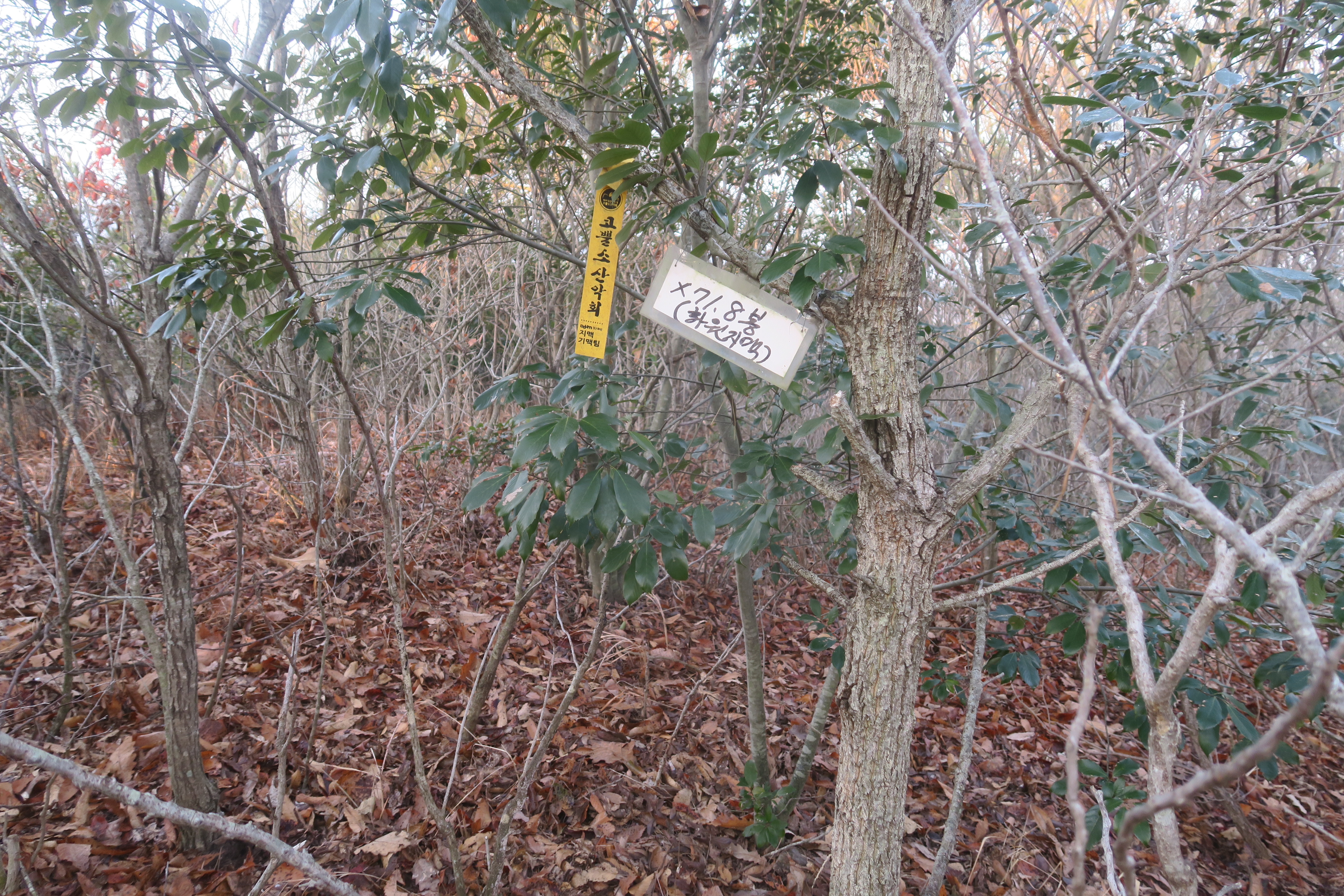 갑자기 등로가 사라지고 잡목의 강한 저항이 시작된다.