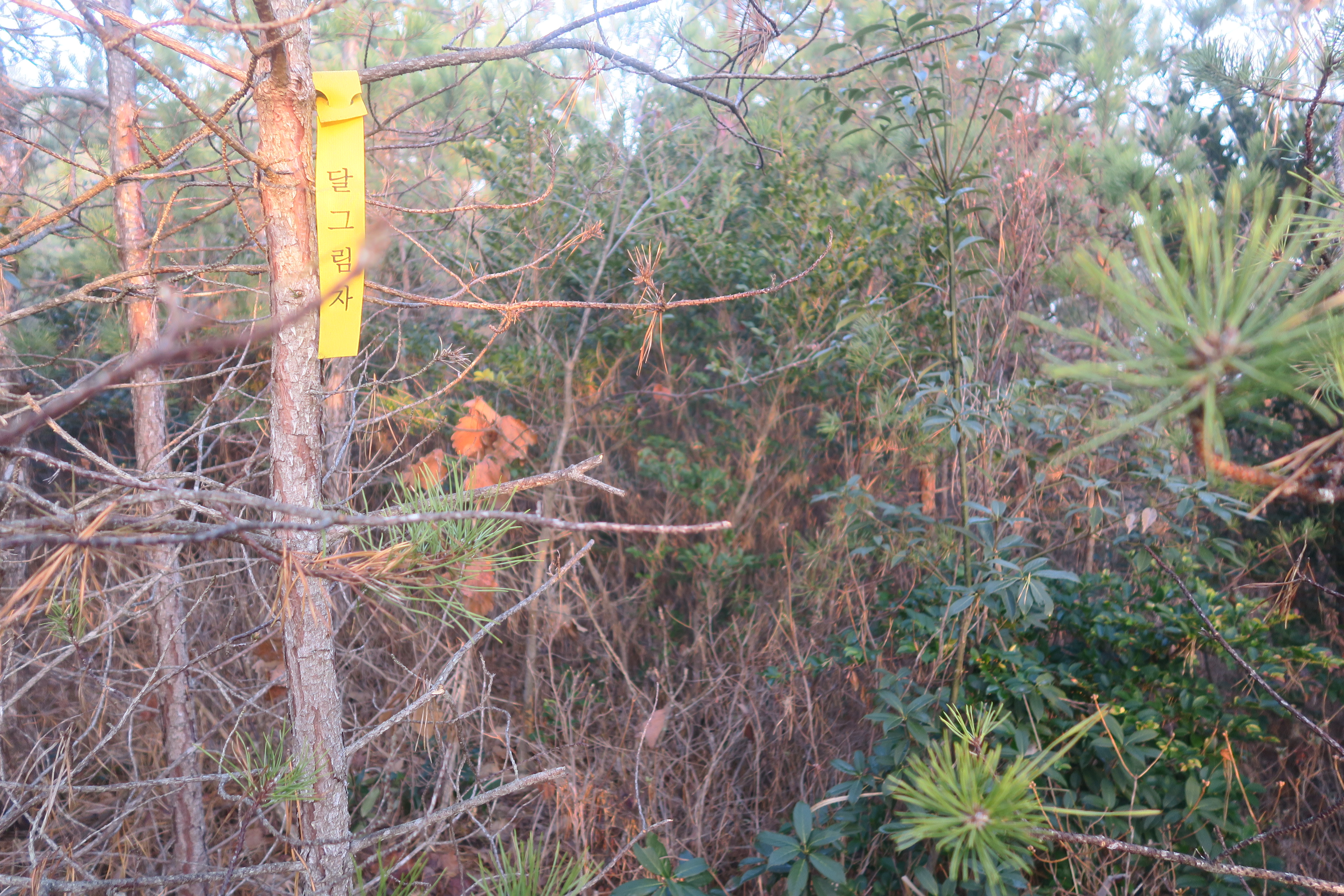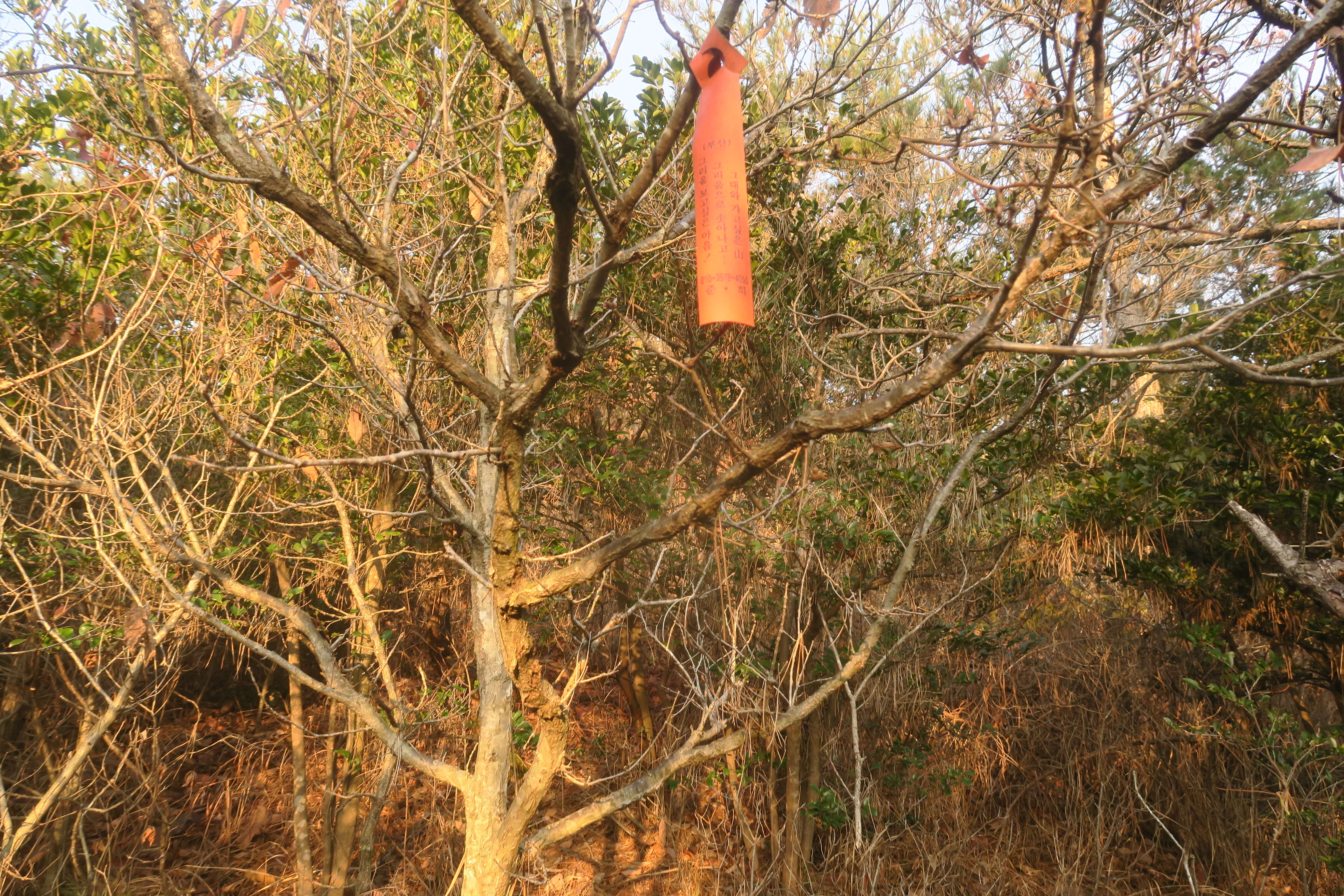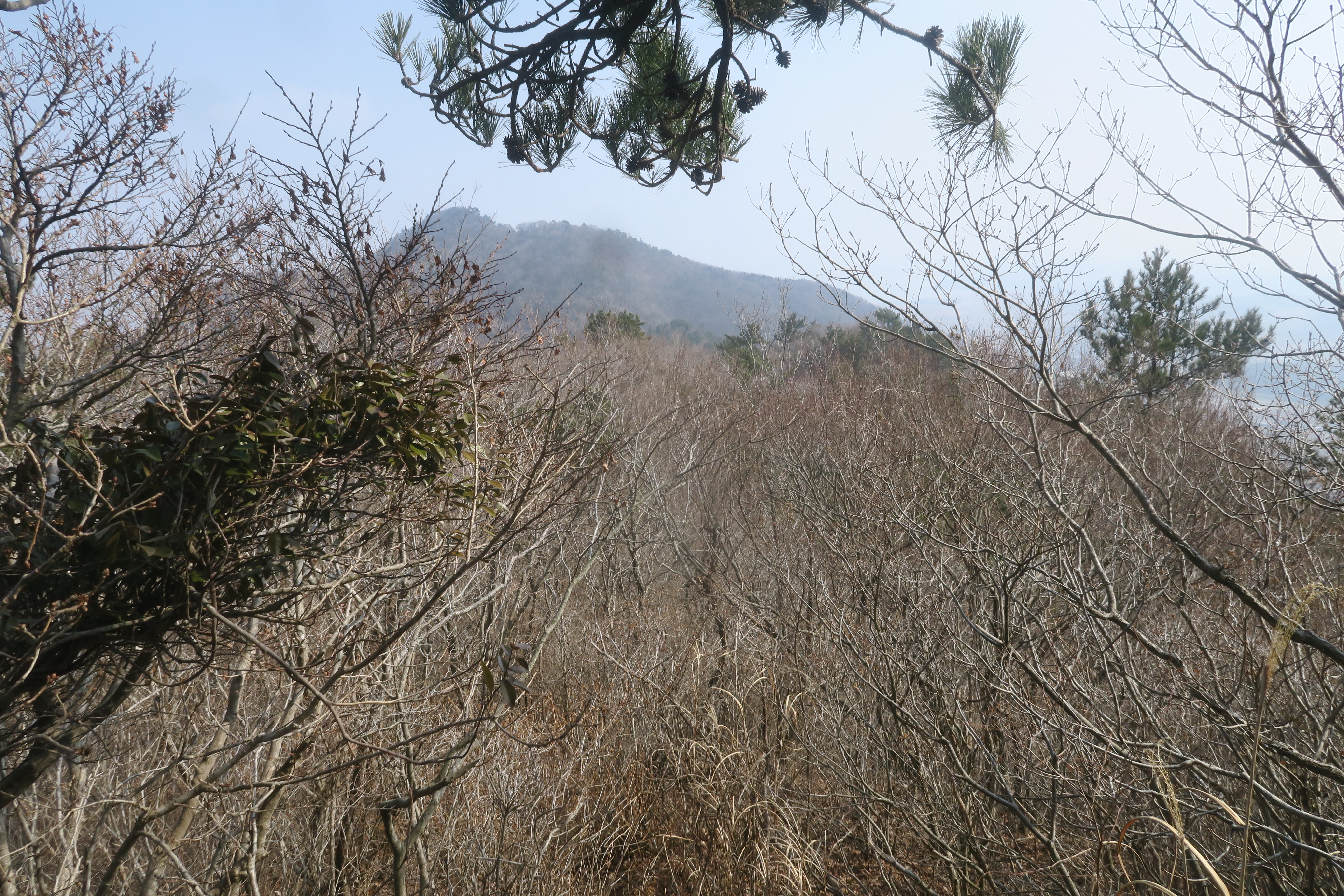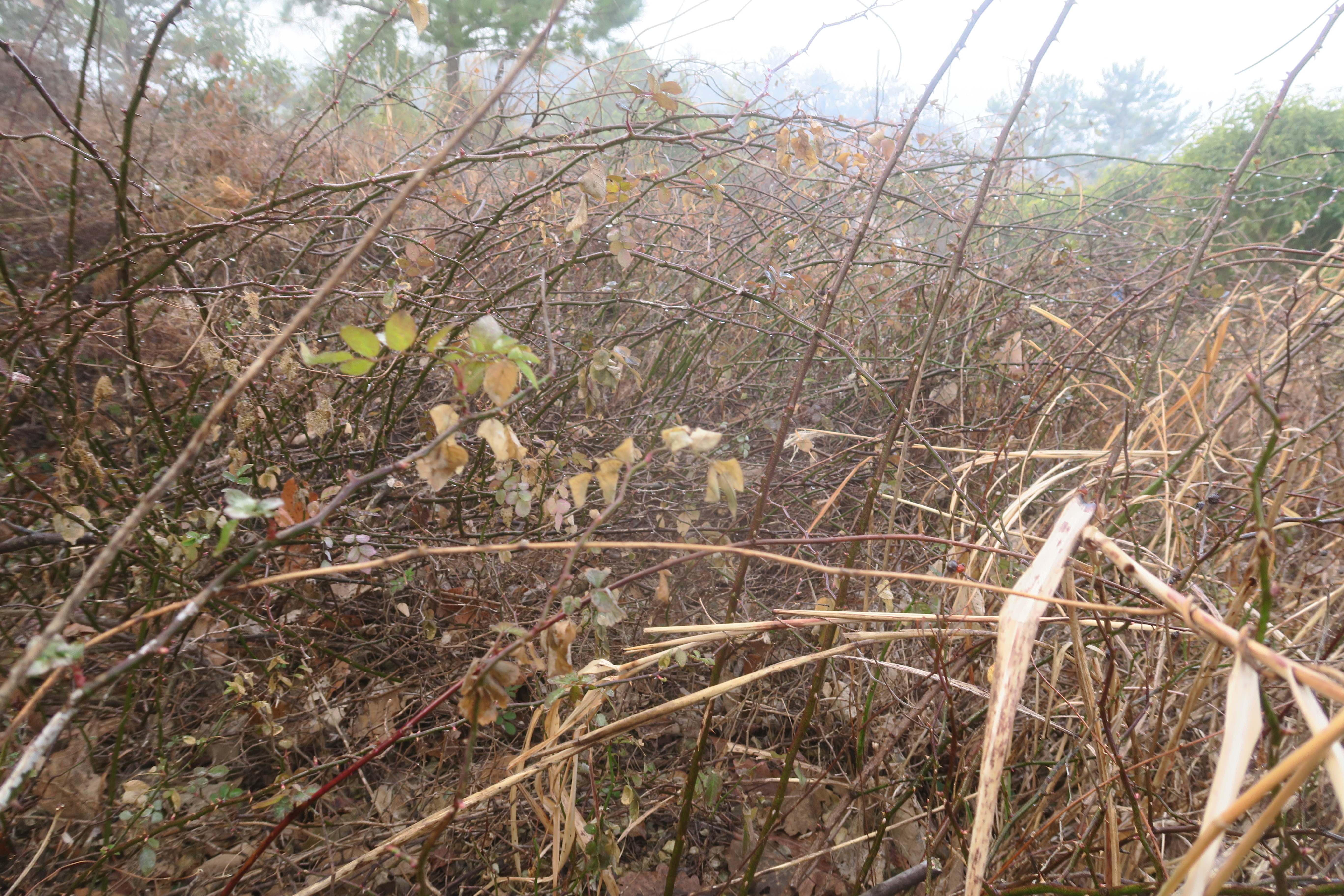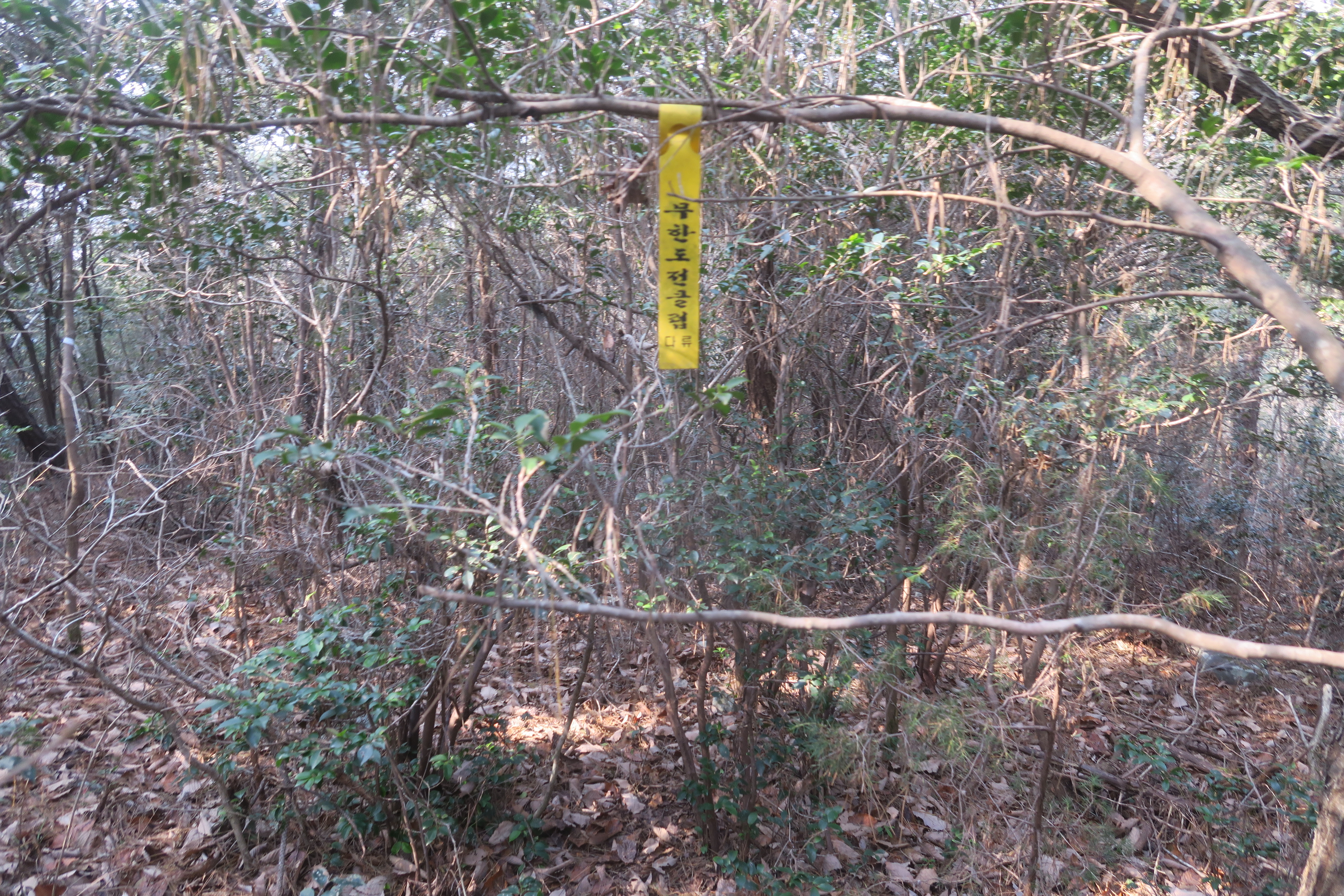 갑자기 등로가 사라지고 잡목의 강한 저항이 시작된다.