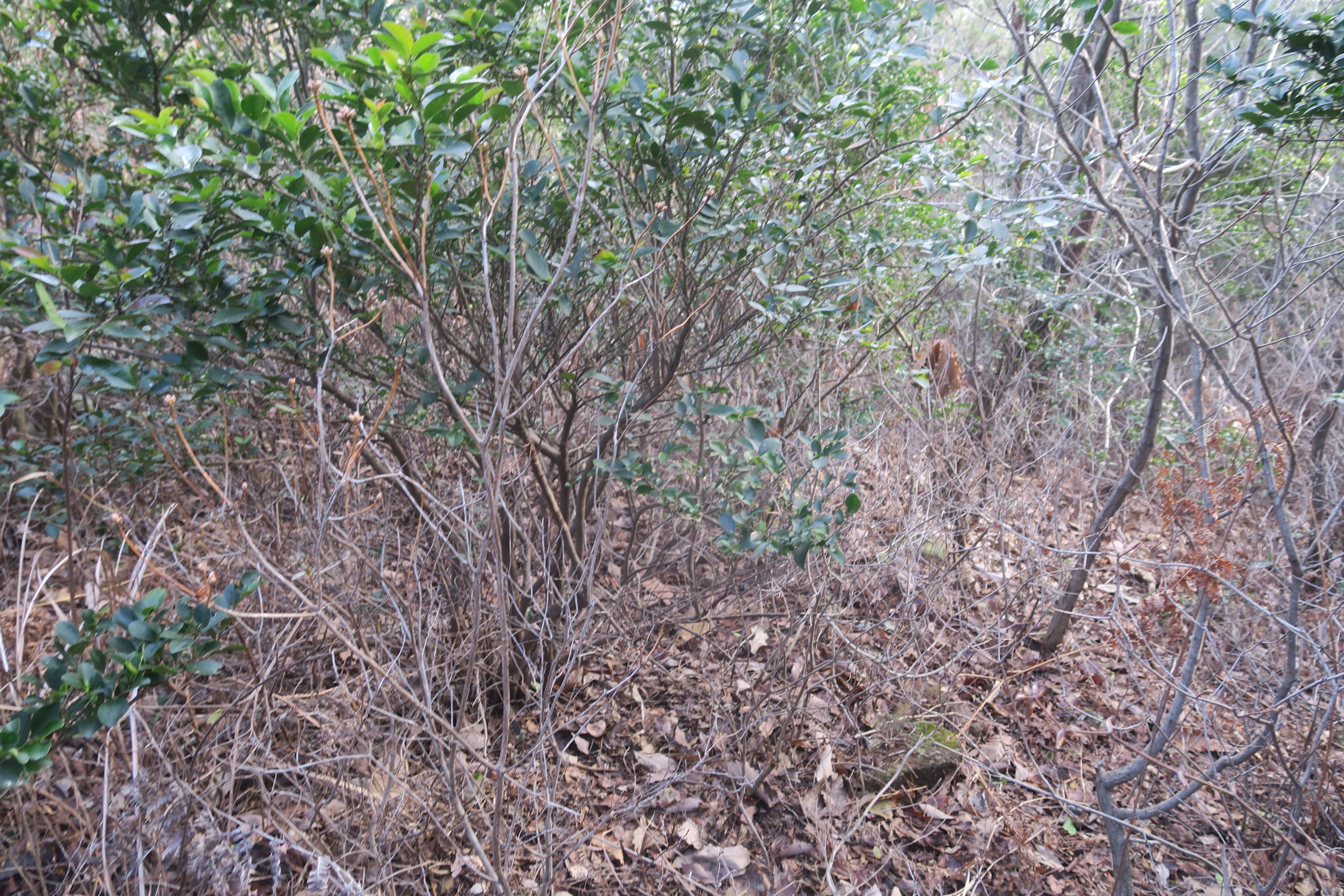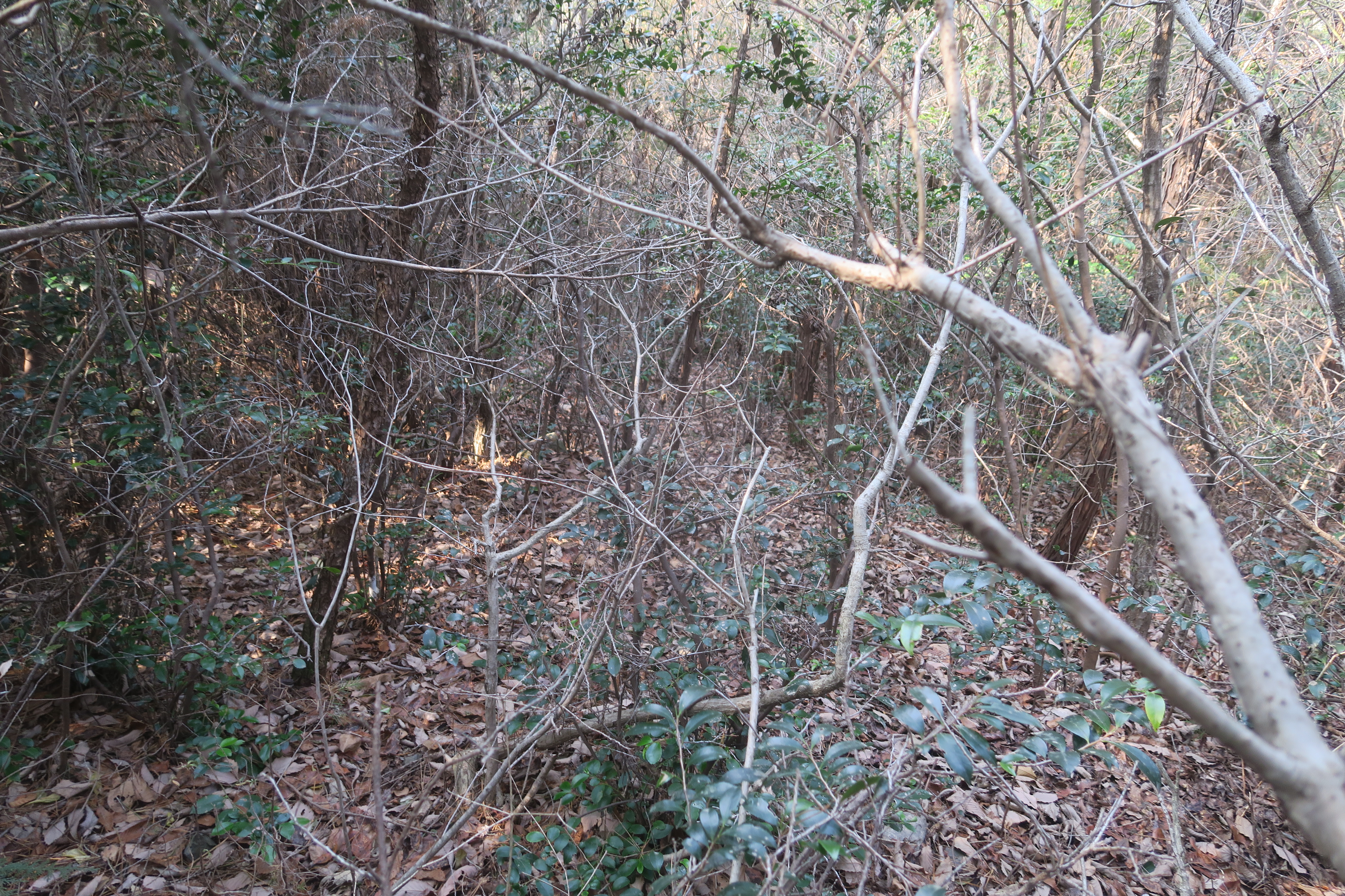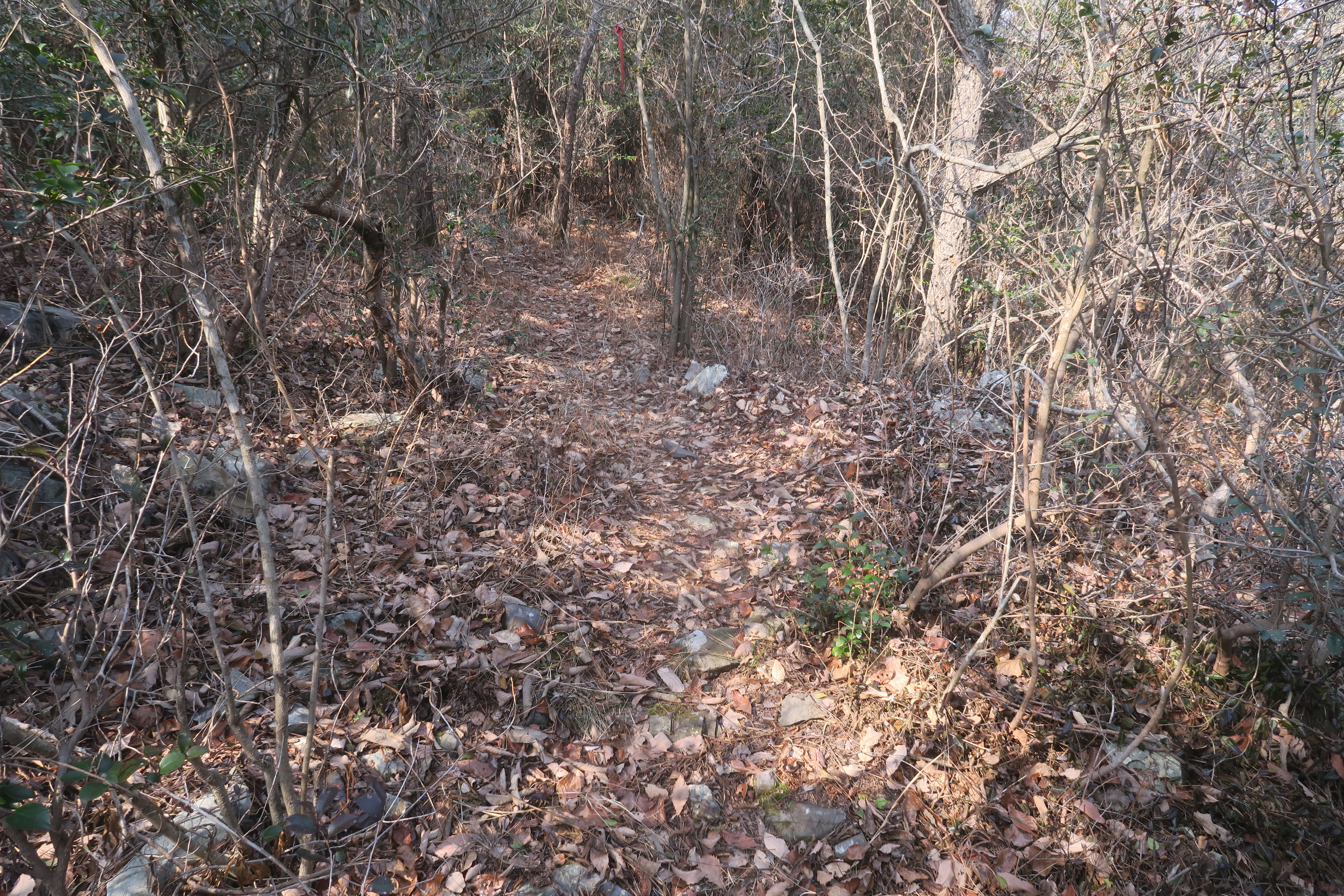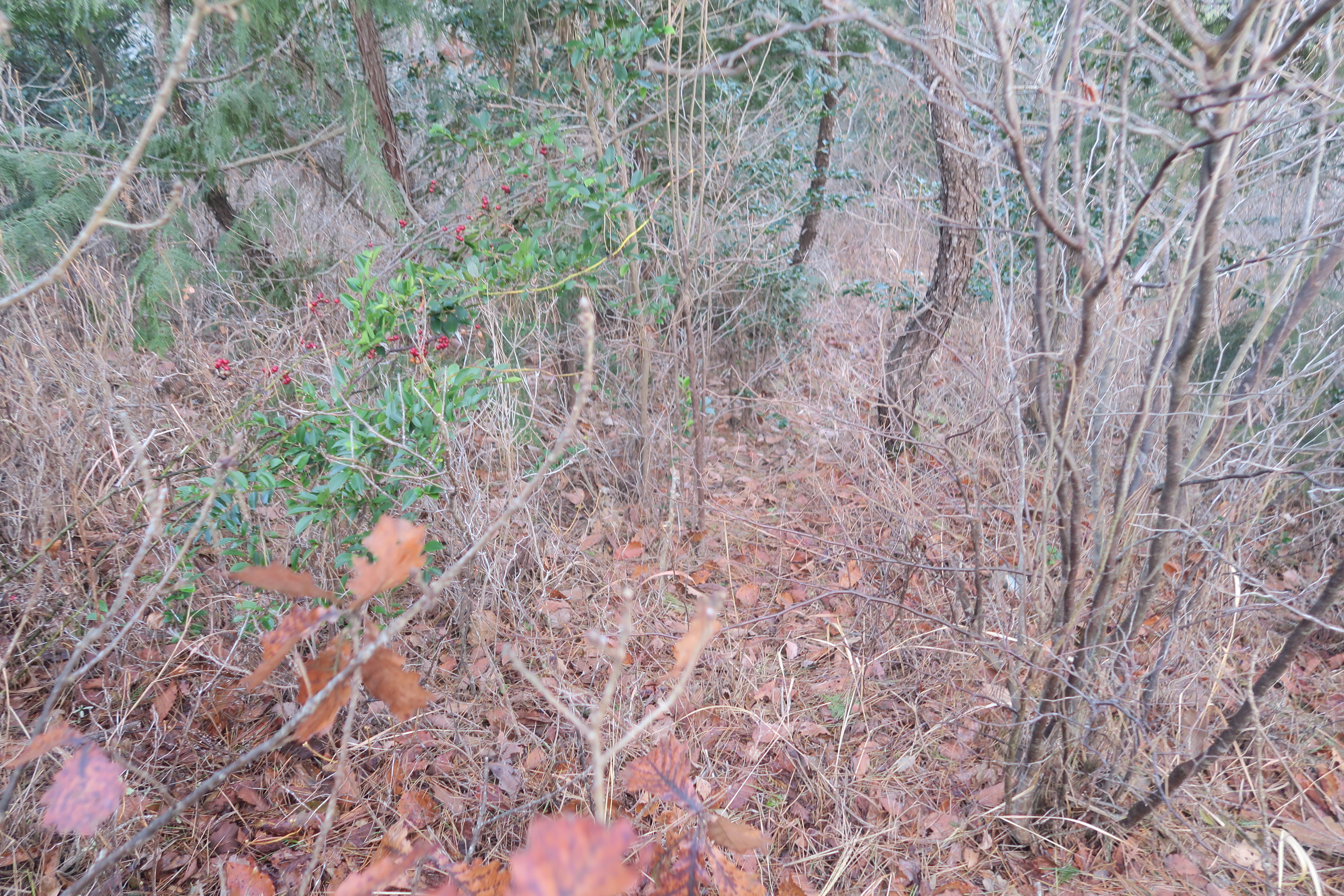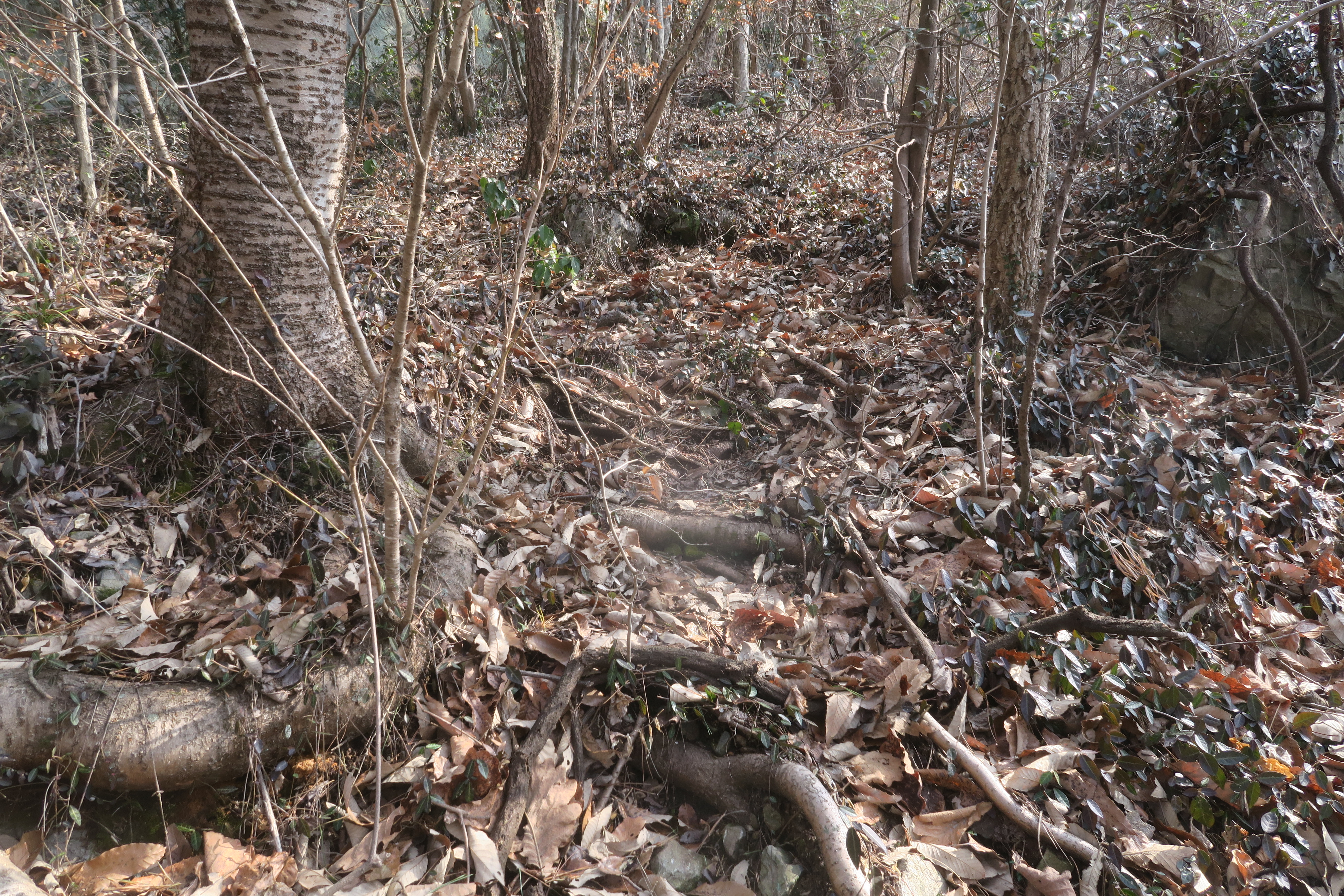 갑자기 등로가 사라지고 잡목의 강한 저항이 시작된다.