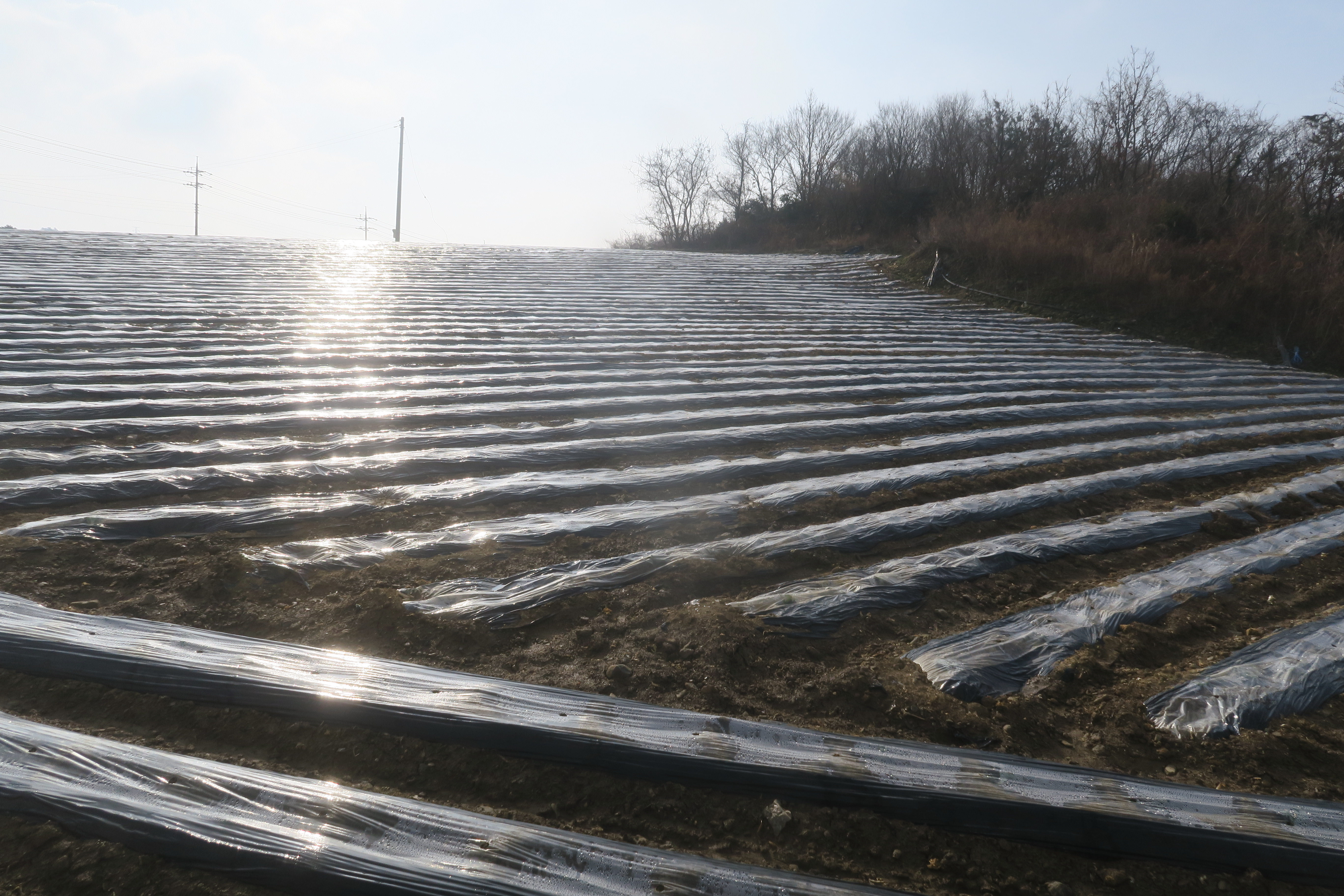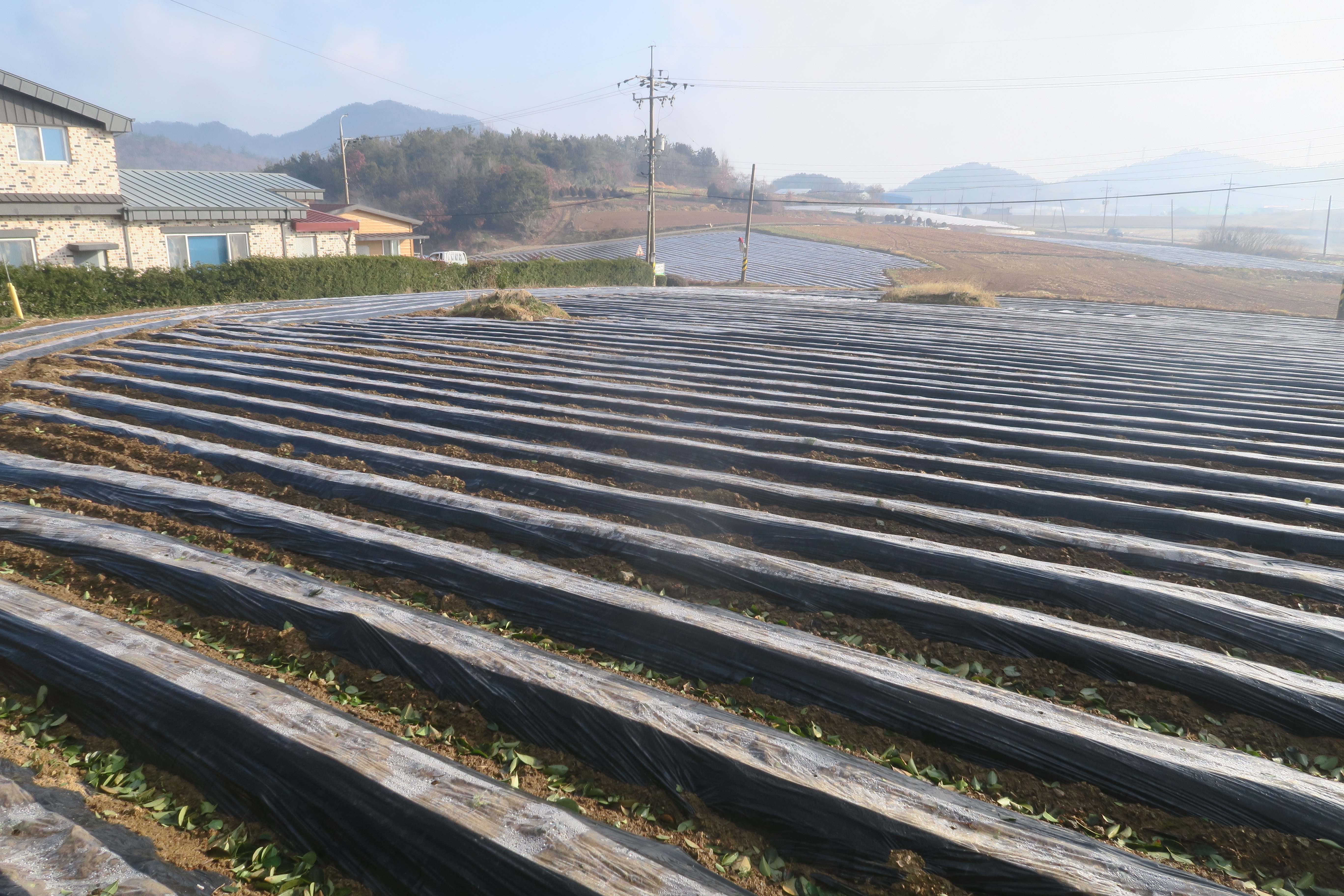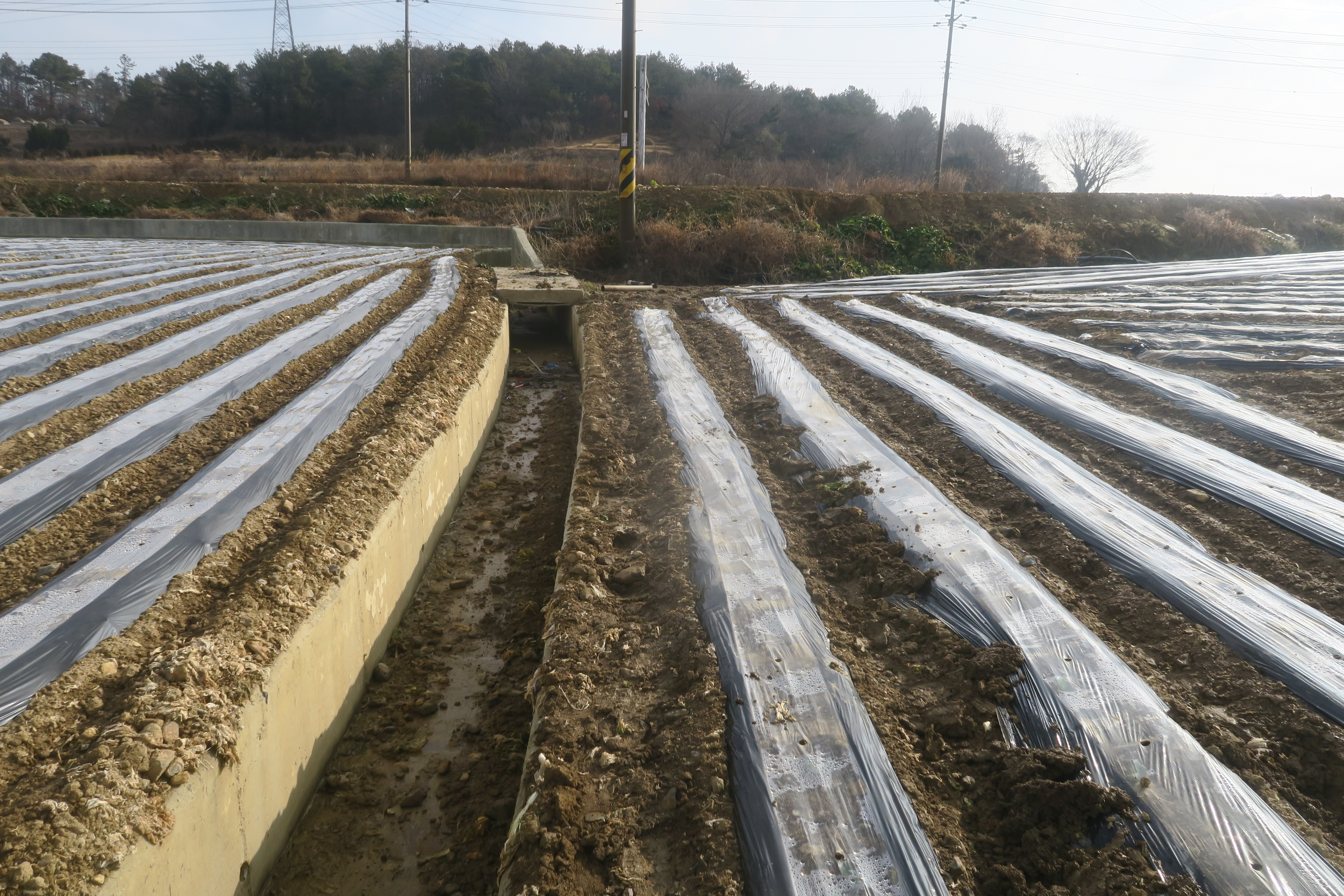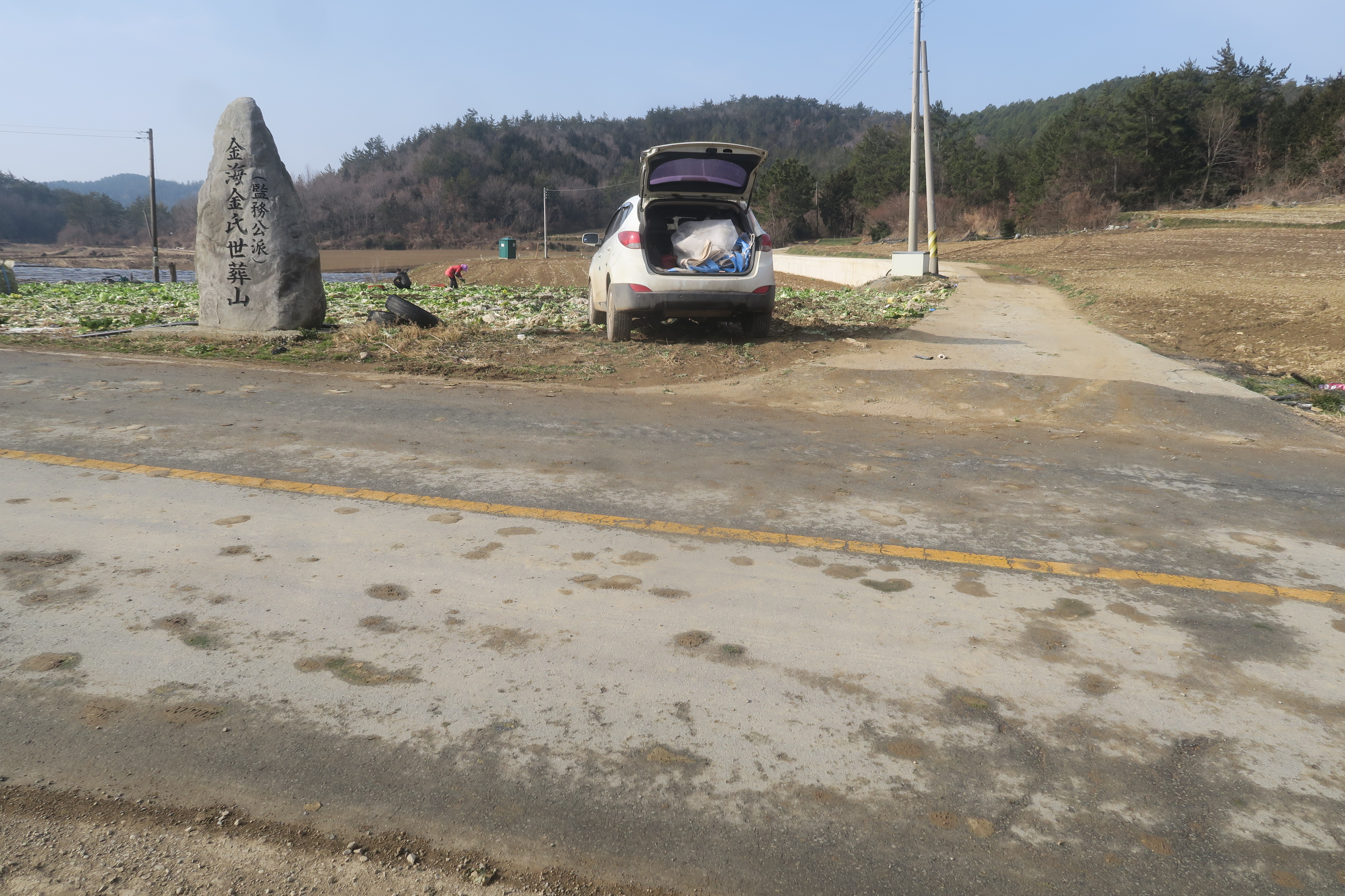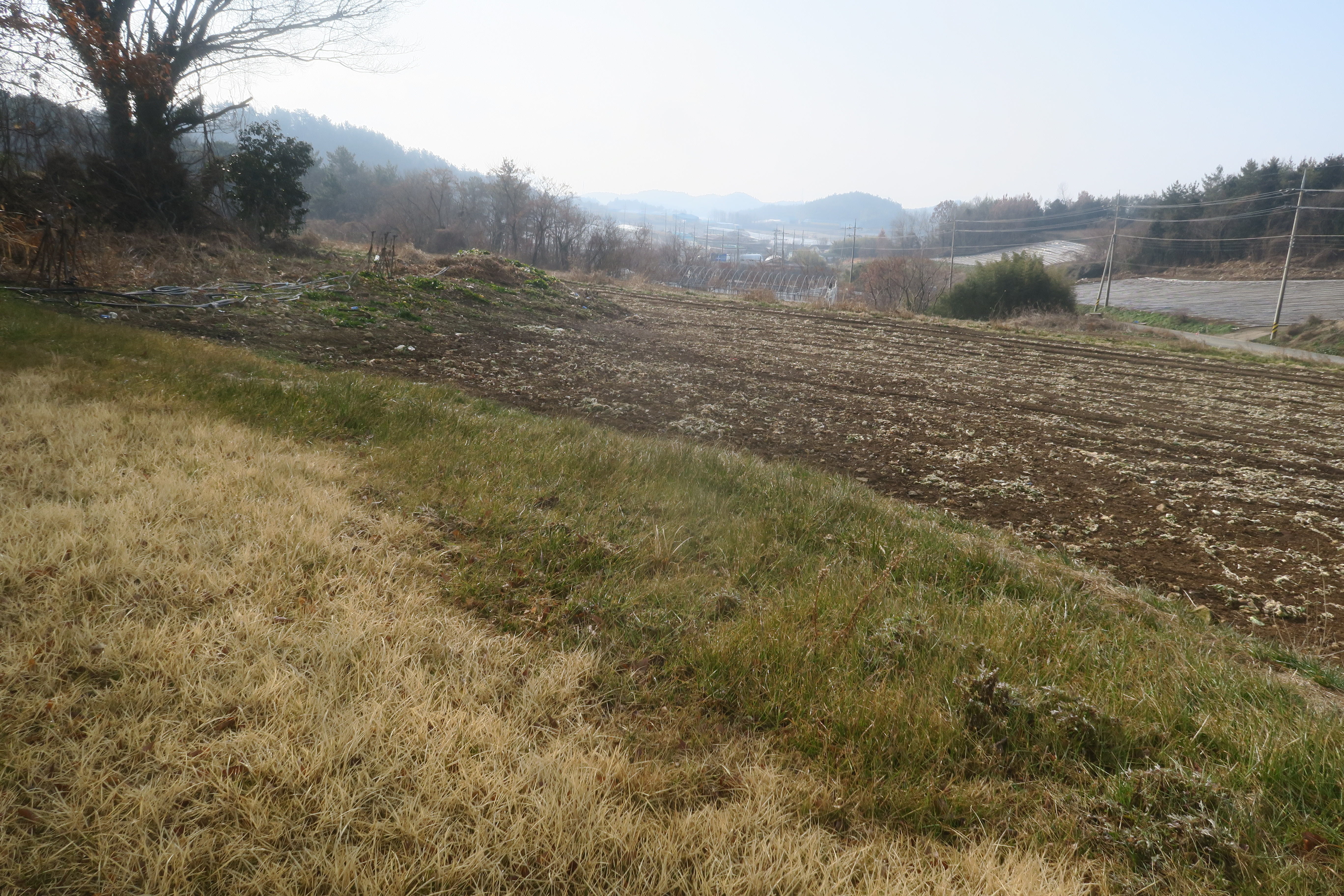 앞에 보이는 송전탑을 포스트 삼아 밭가운데의 농로로 이어지는