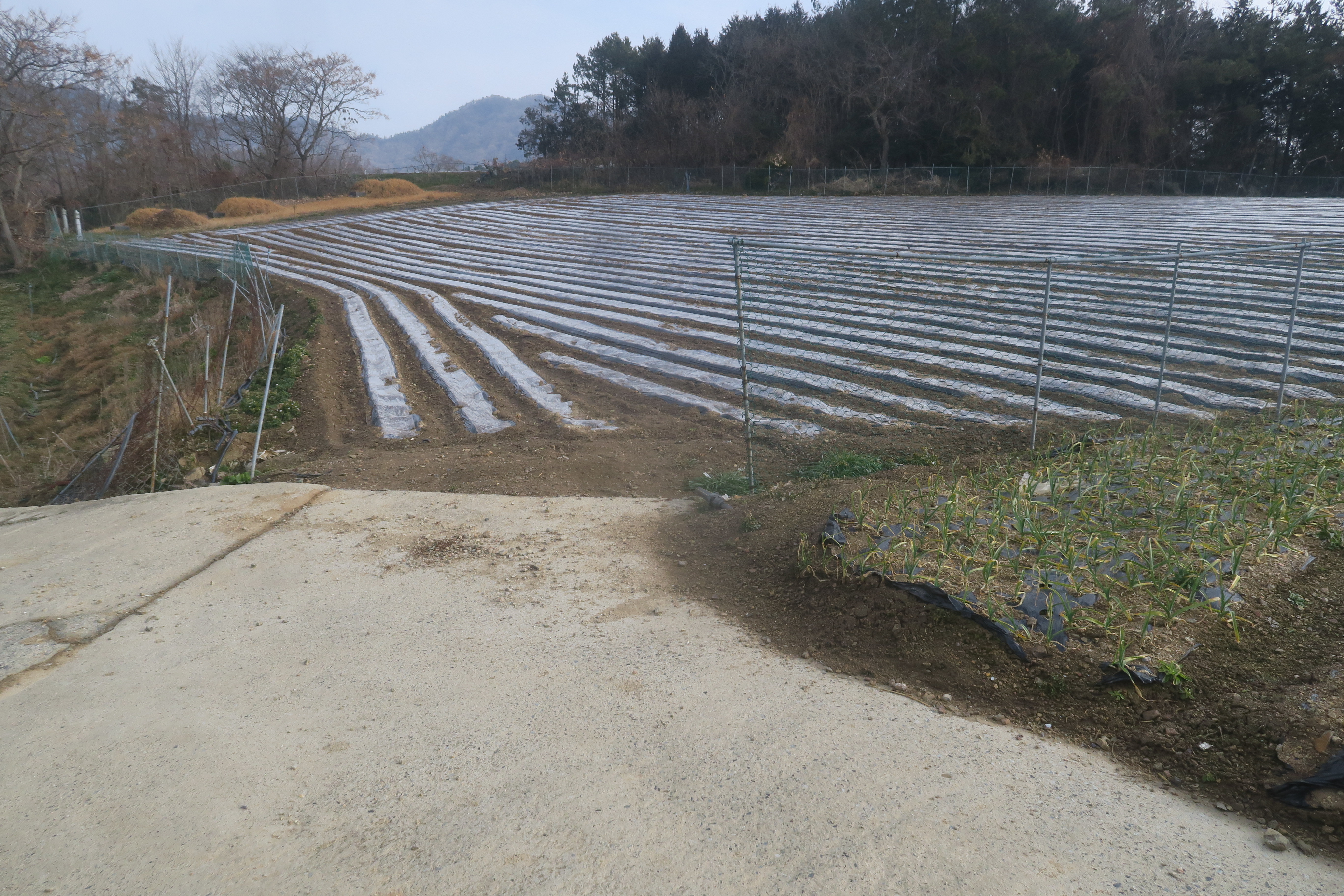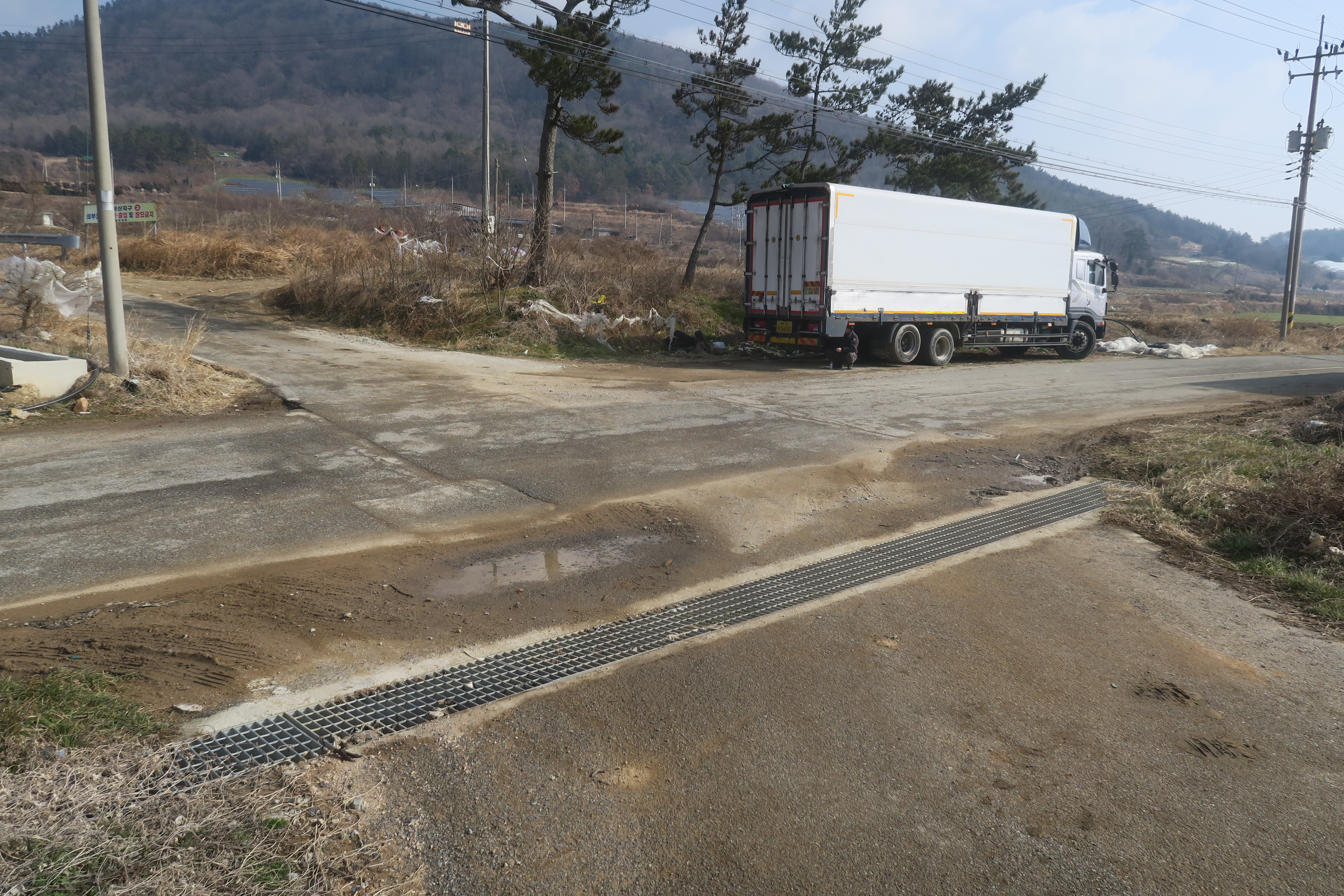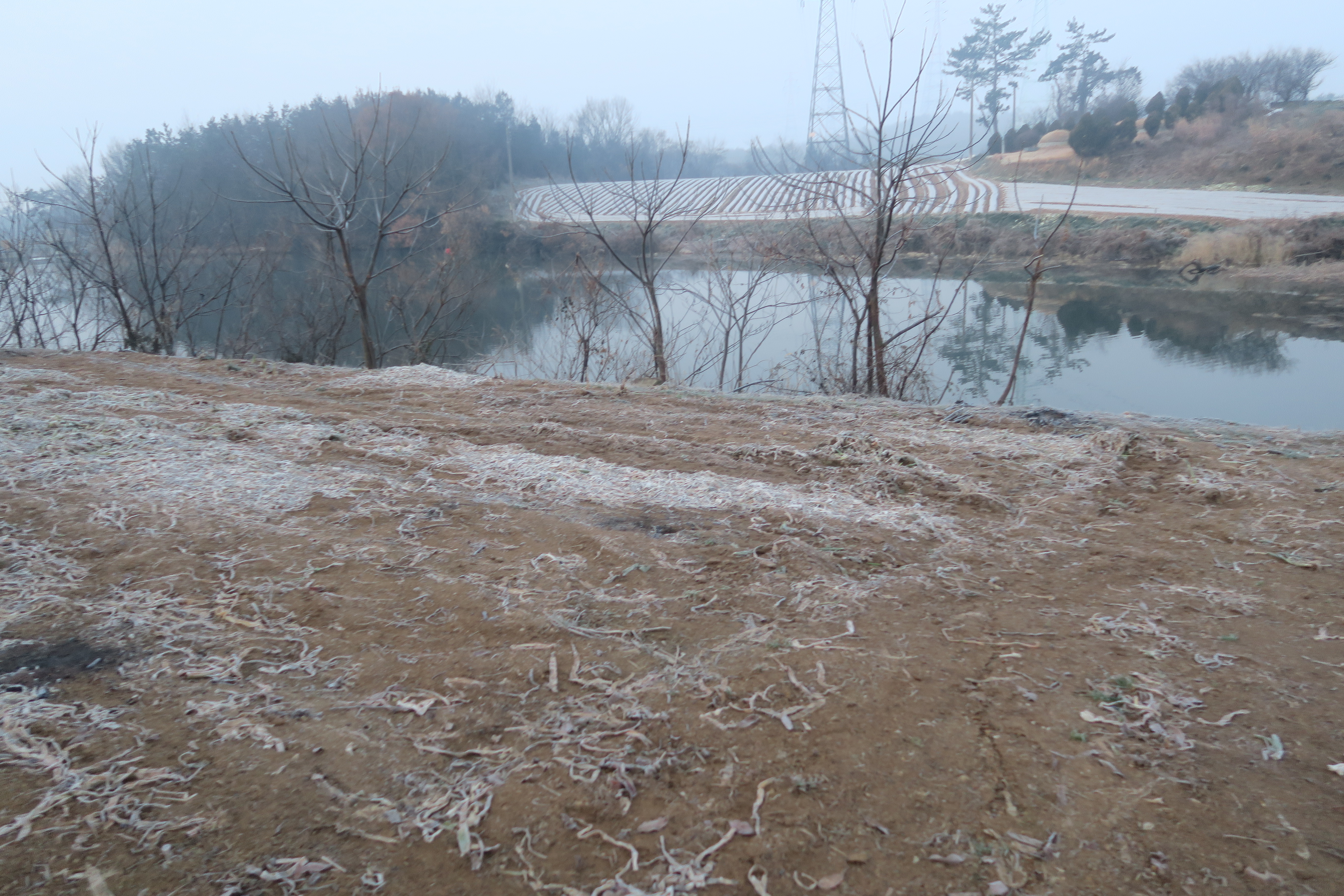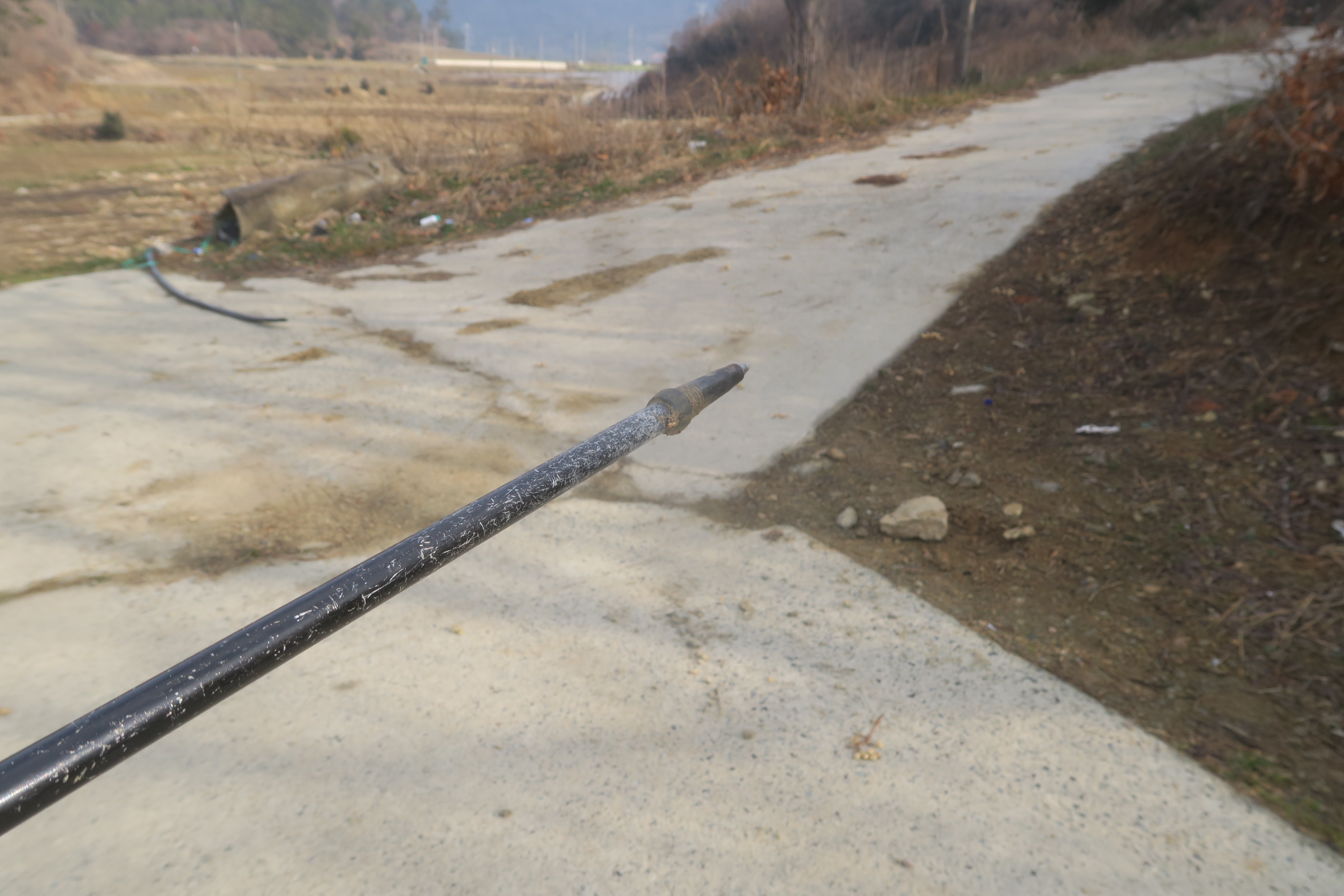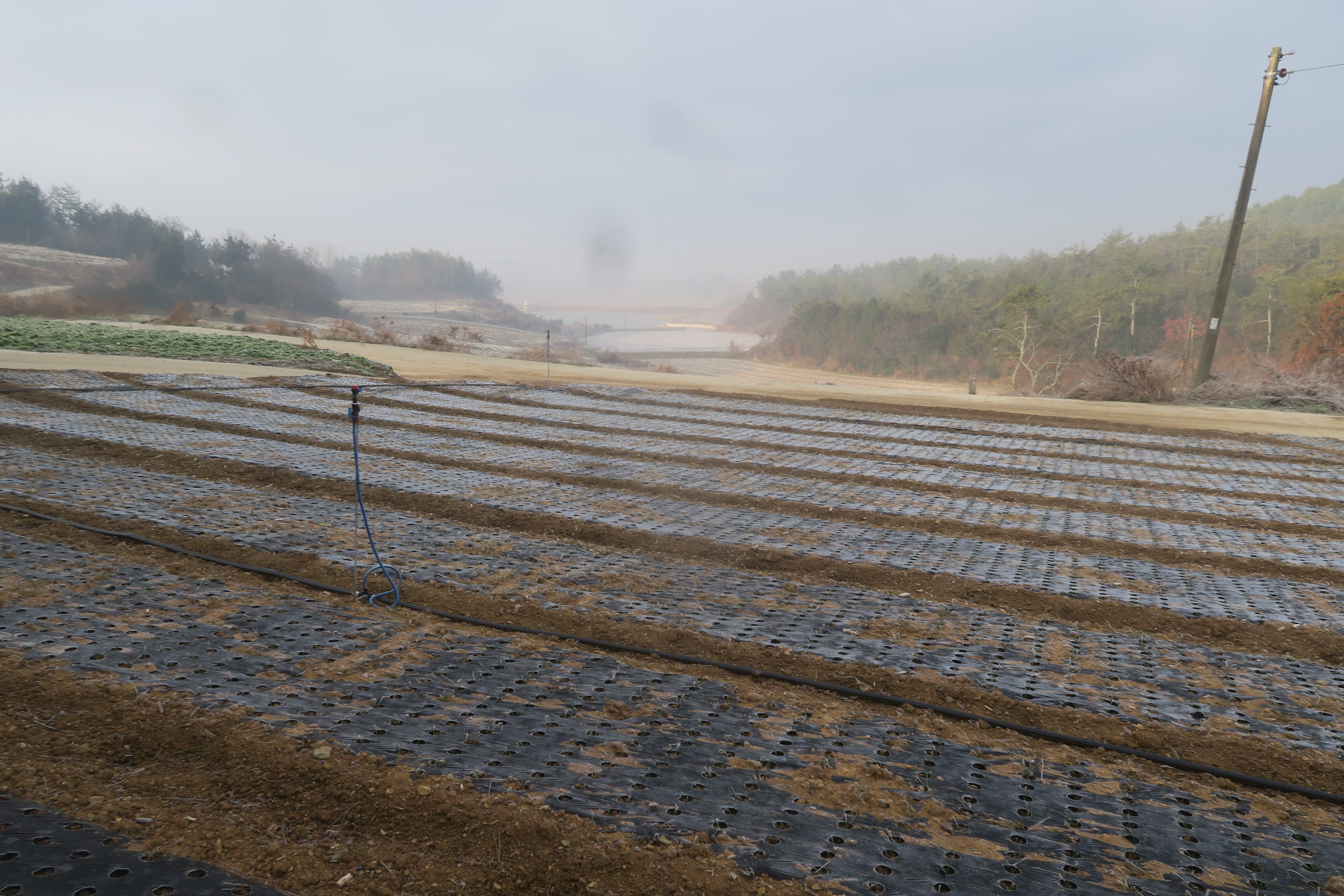 앞에 보이는 송전탑을 포스트 삼아 밭가운데의 농로로 이어지는