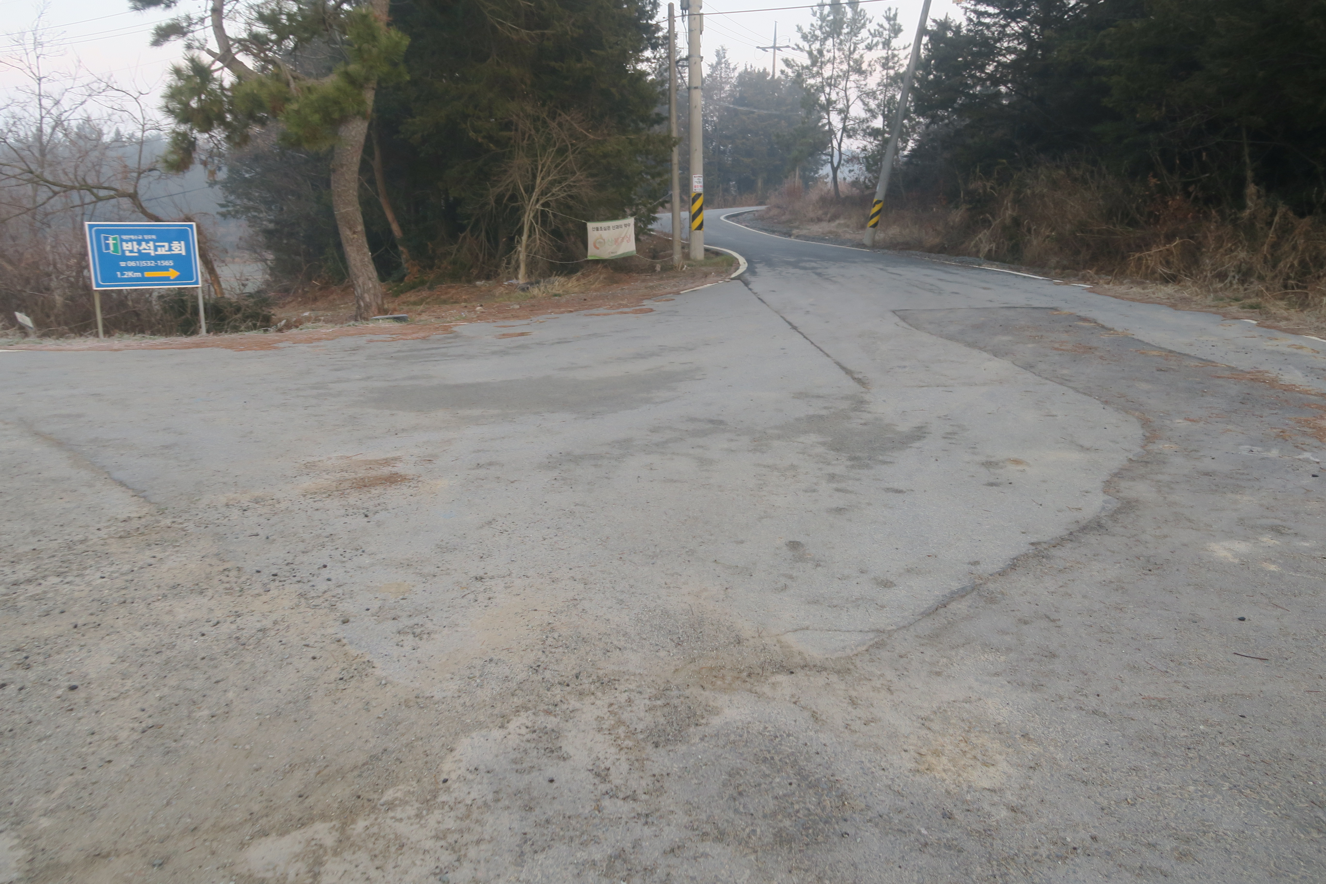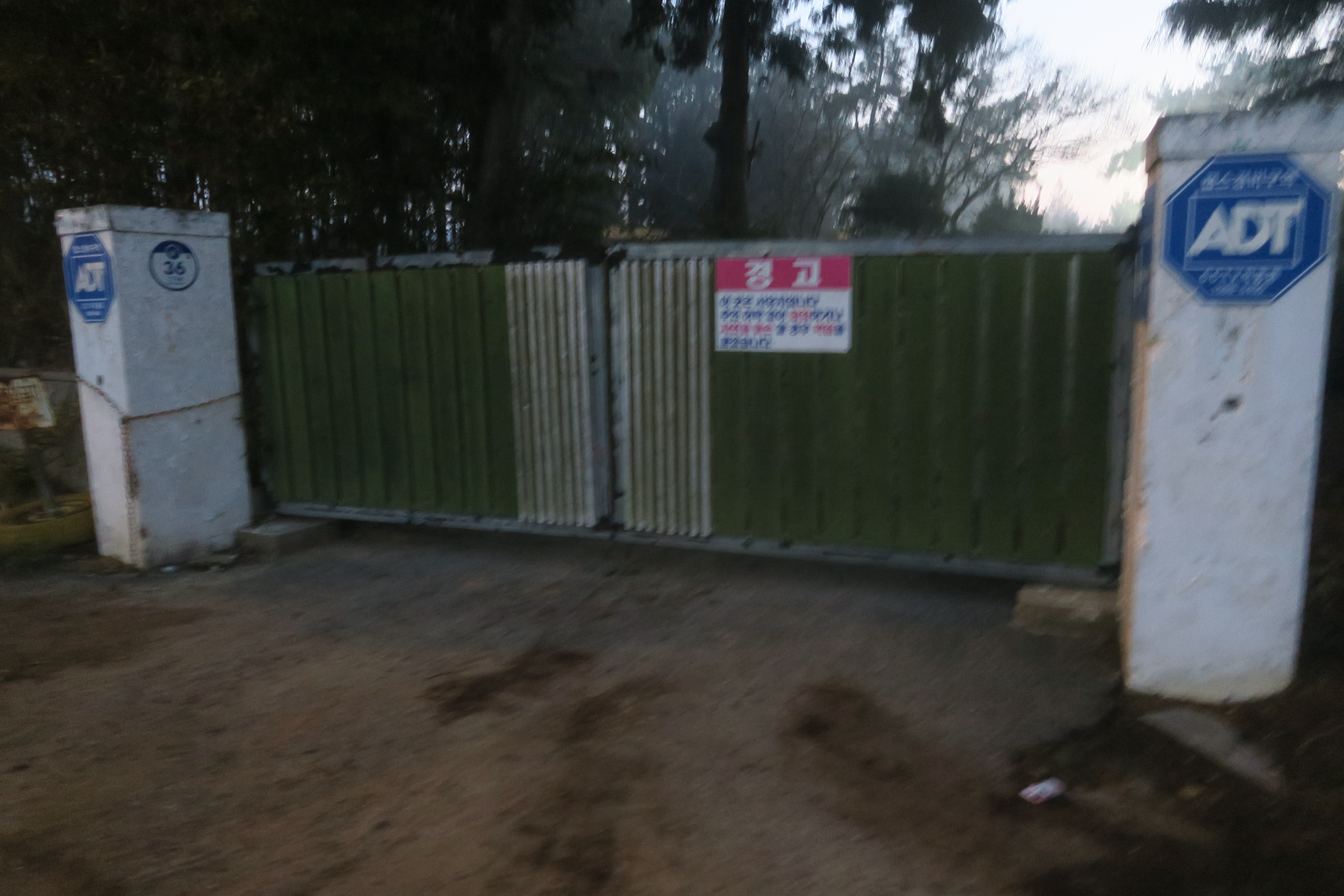 낙원교회를 지나자마자 우측으로 사유지라는 경고 팻말이