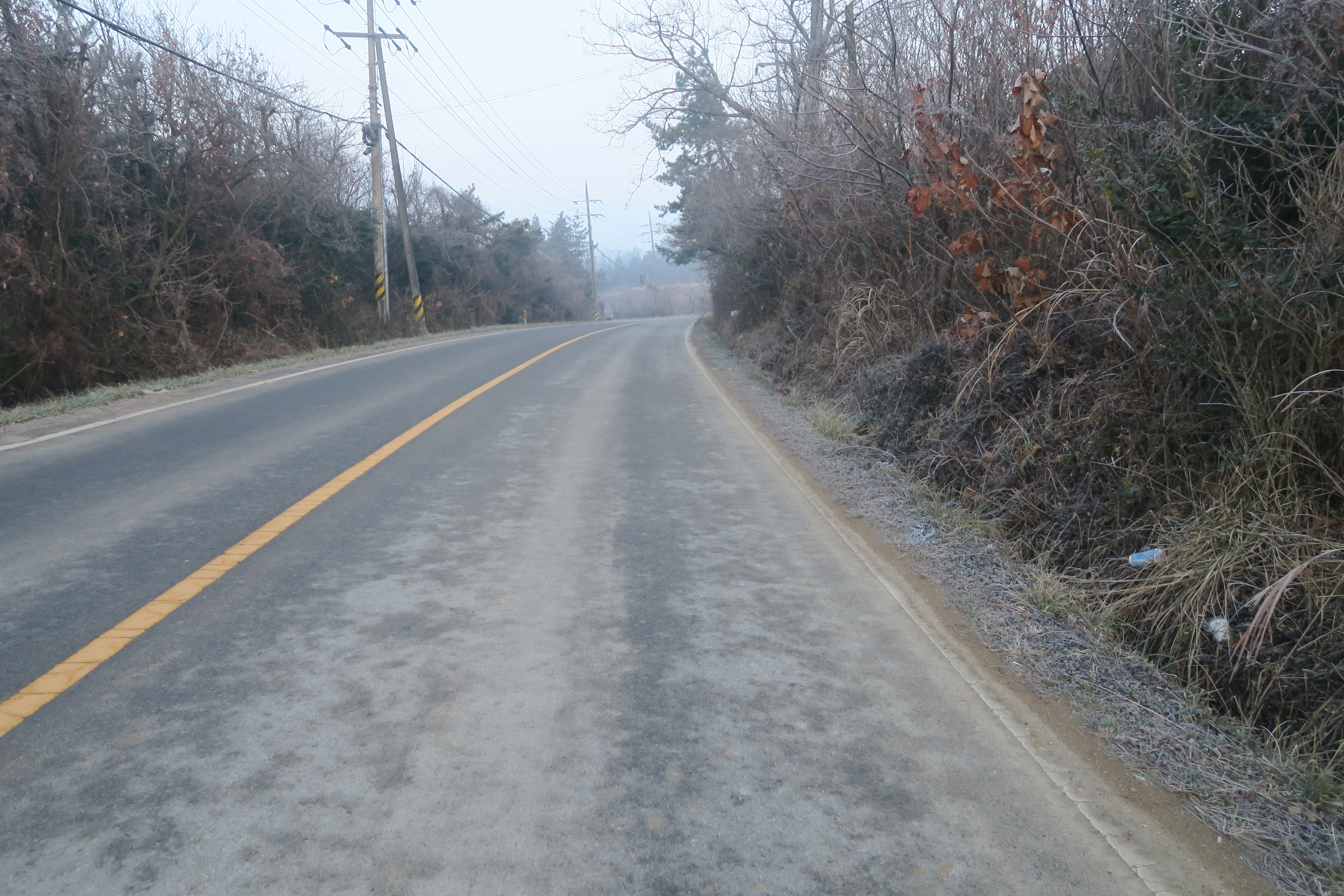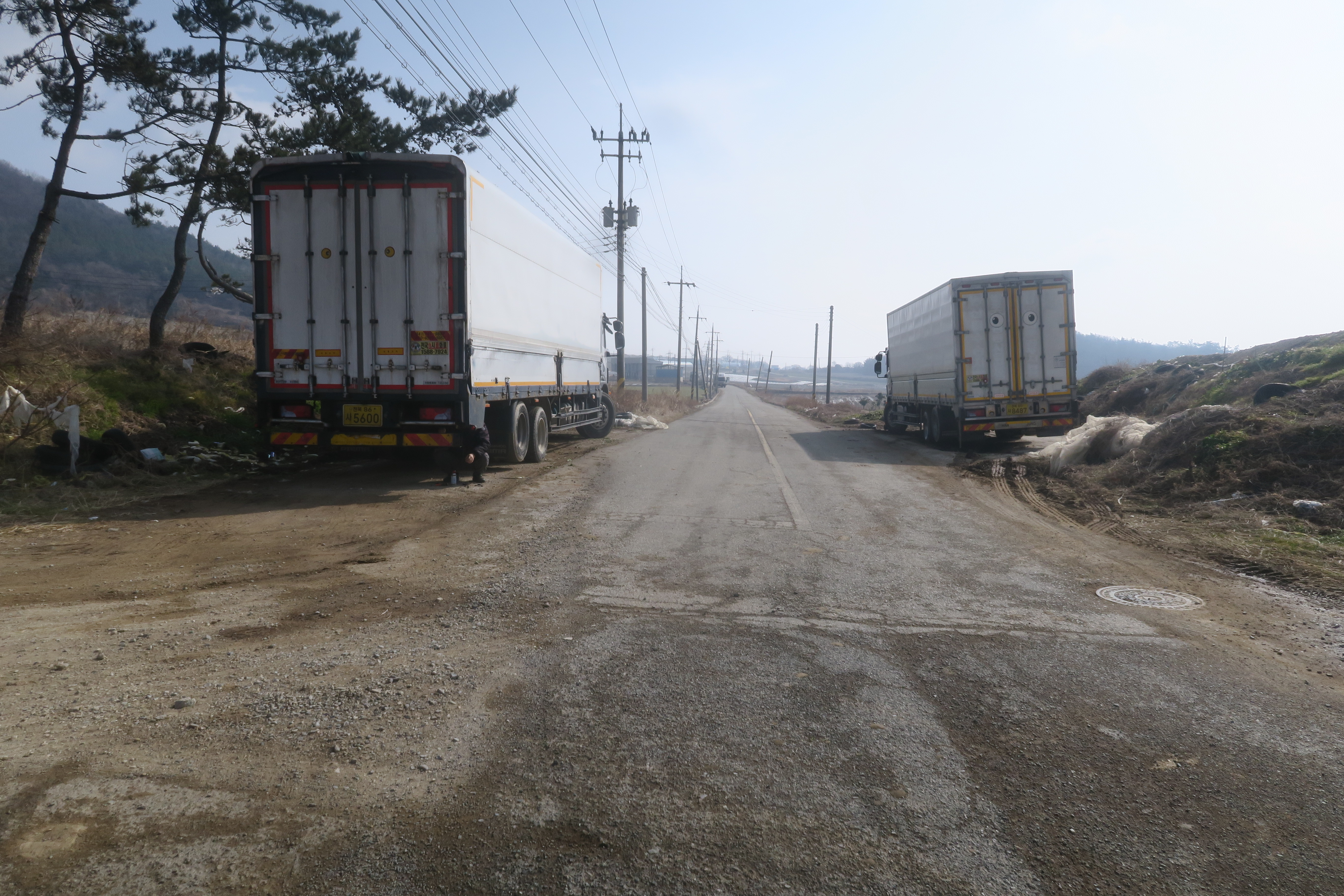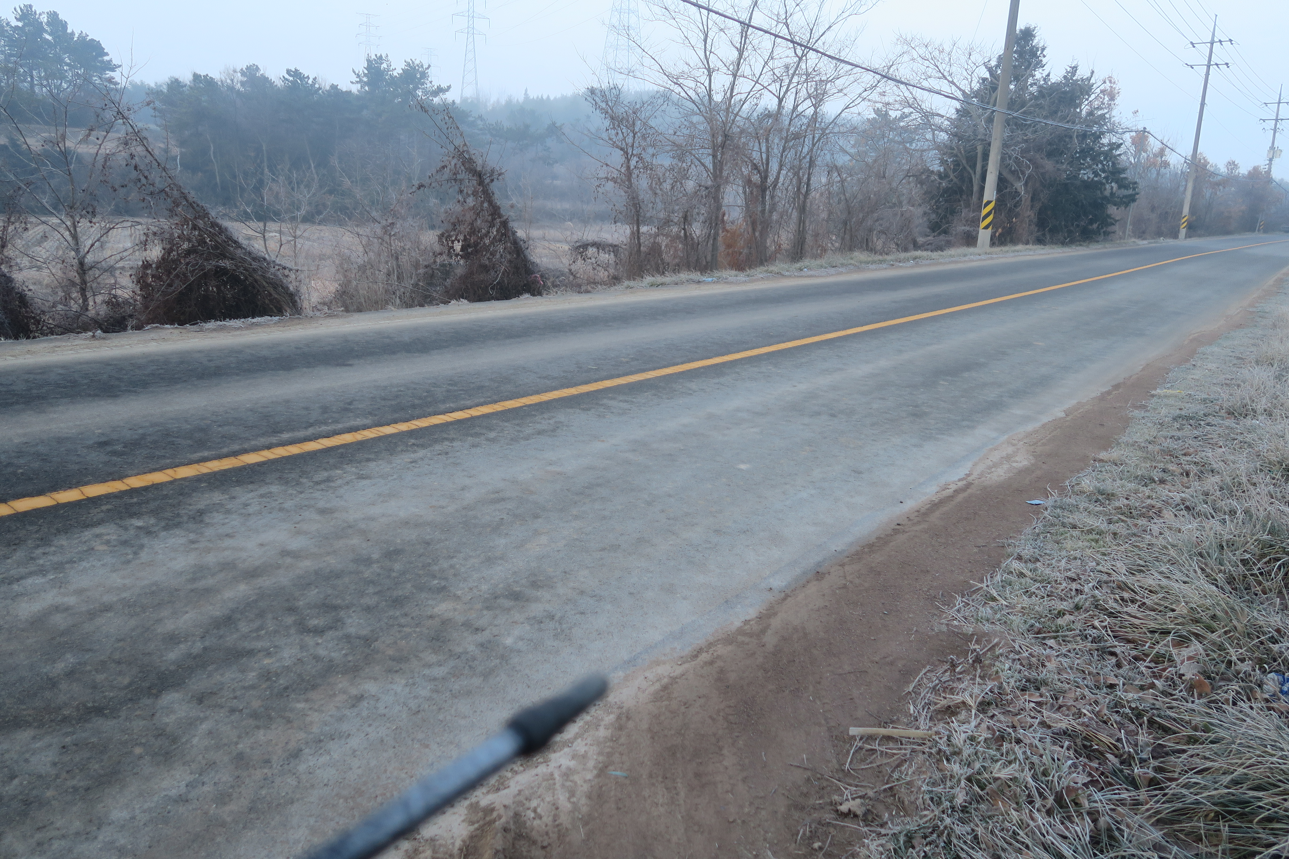 교통량이 많아서 갓길쪽으로 바짝 붙어서 길을 걷는다