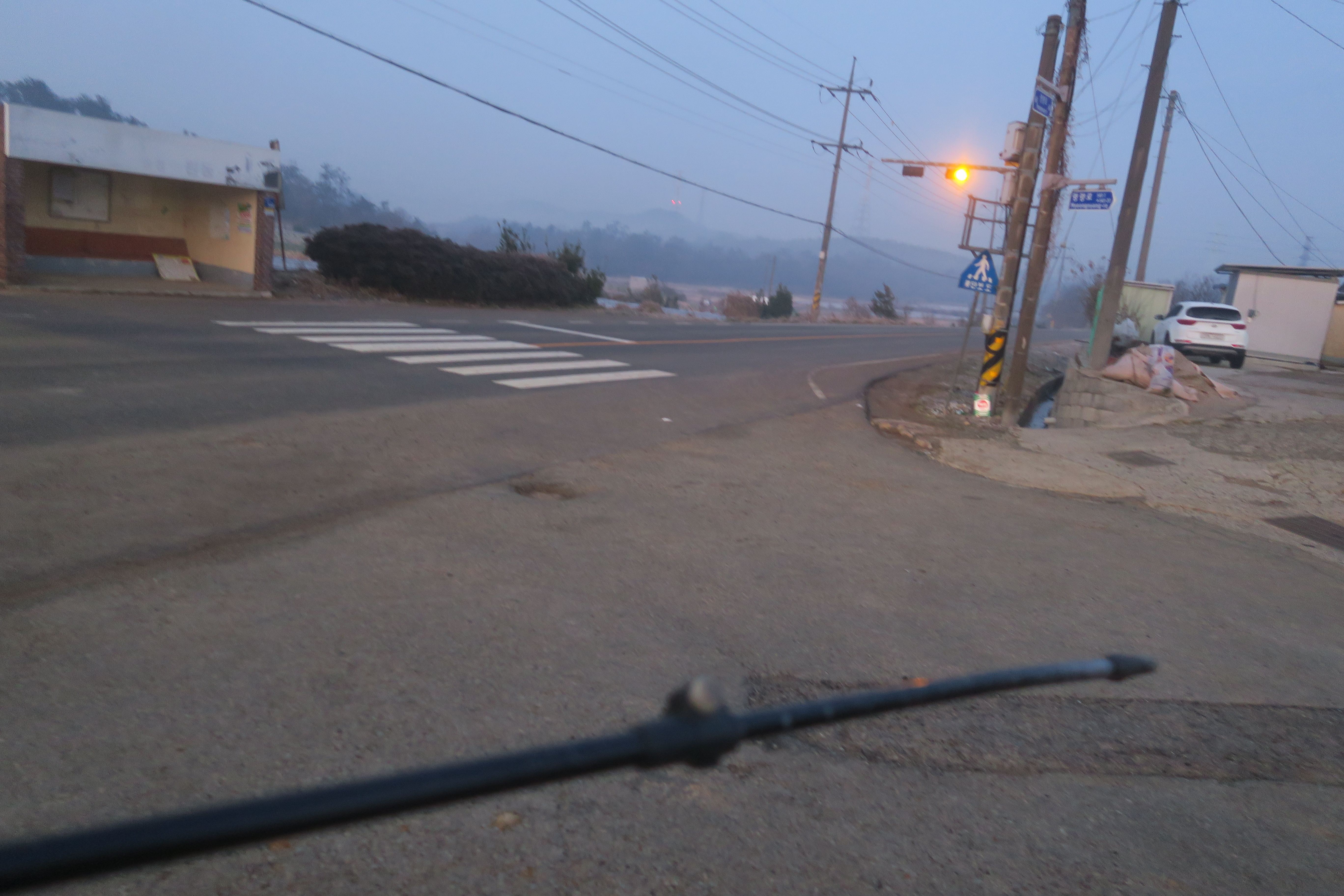 있어 거리도 희미하고, 도로에 켜져있는 점멸등조차도 흐릿하다