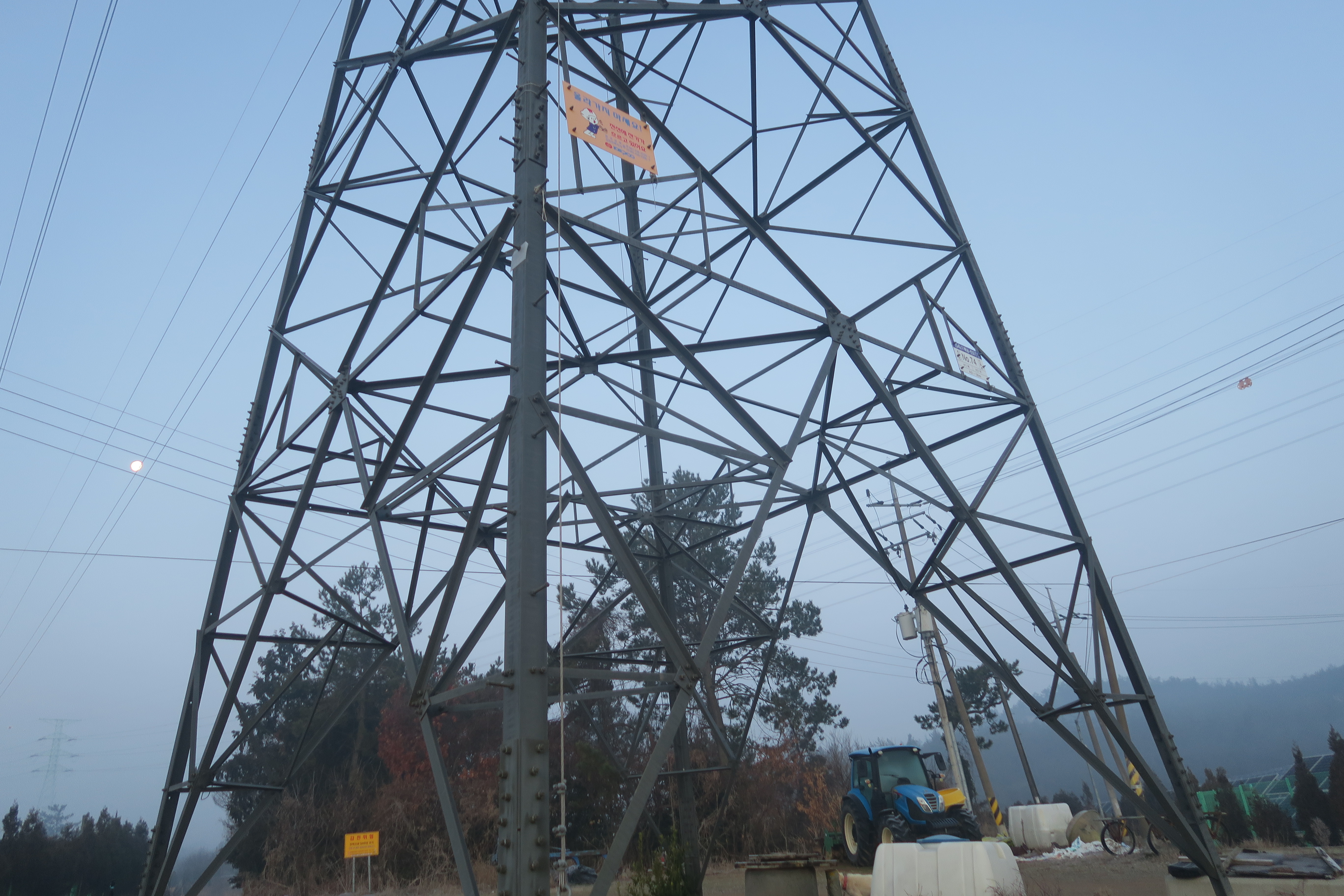 있는 곳인지 한전에서 설치한 빨간 띠지들이 많이 보인다