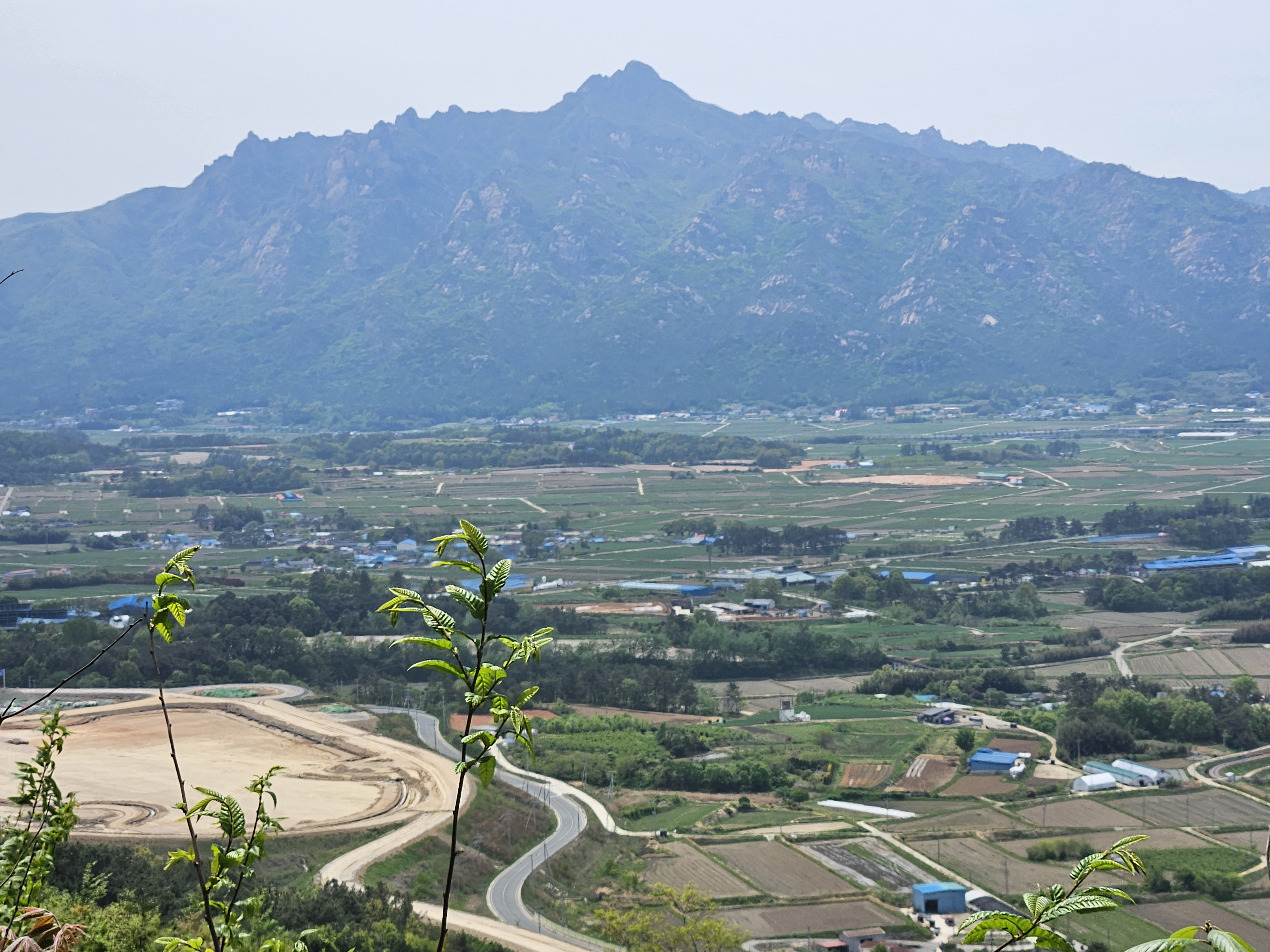 조림지를 보이고, 그 아랫쪽으로는 장산리 양동마을이 살짝 보인다.
