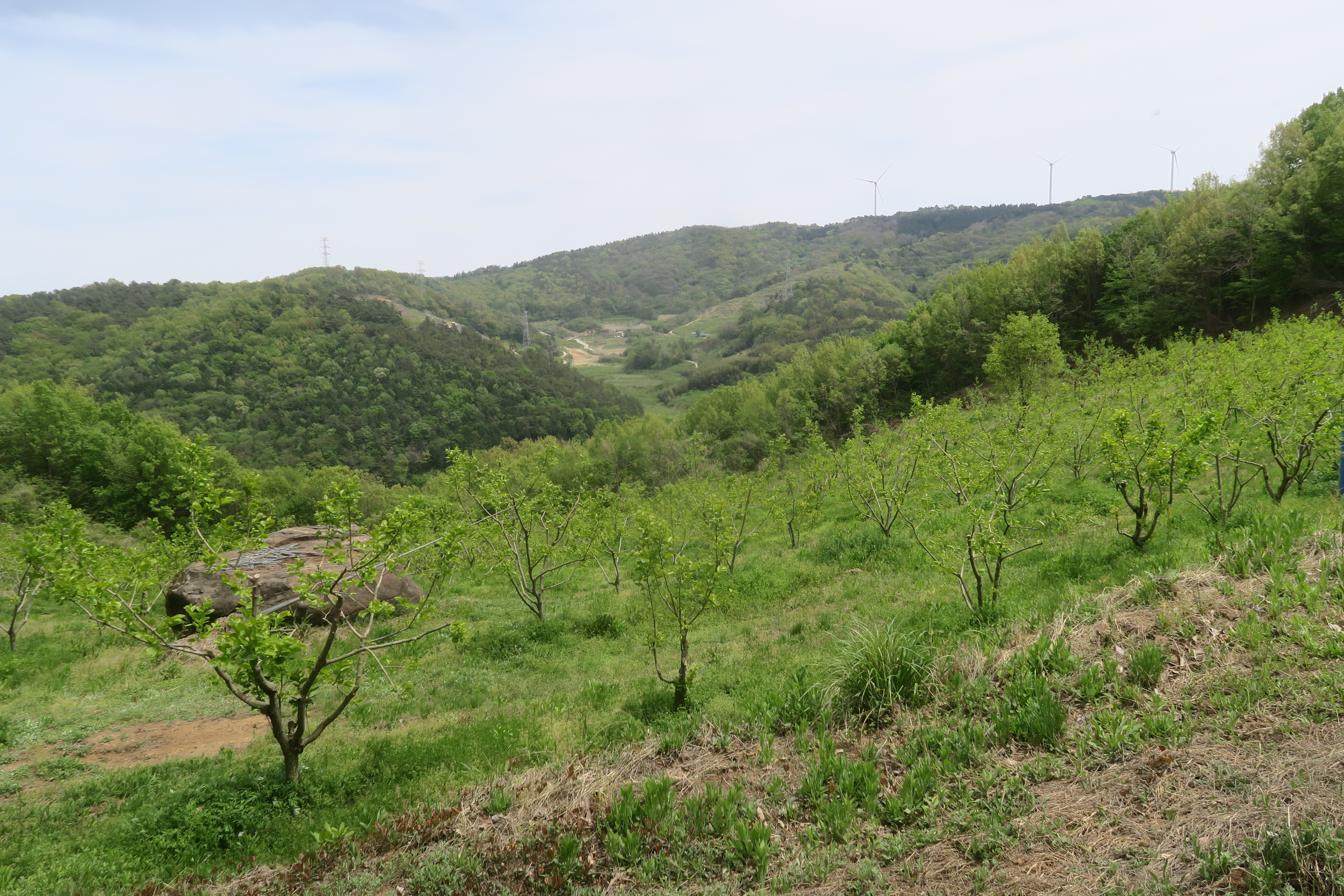 장소에는 목장은 없어지고, 풍력발전 바람개비만 목장터를