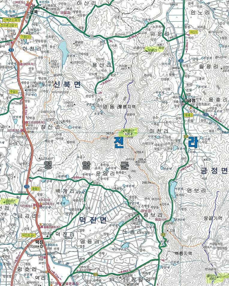 우측은 영암군 신북면 이천리 냉천저수지로 가는 길이 뚜렸하게 보인다