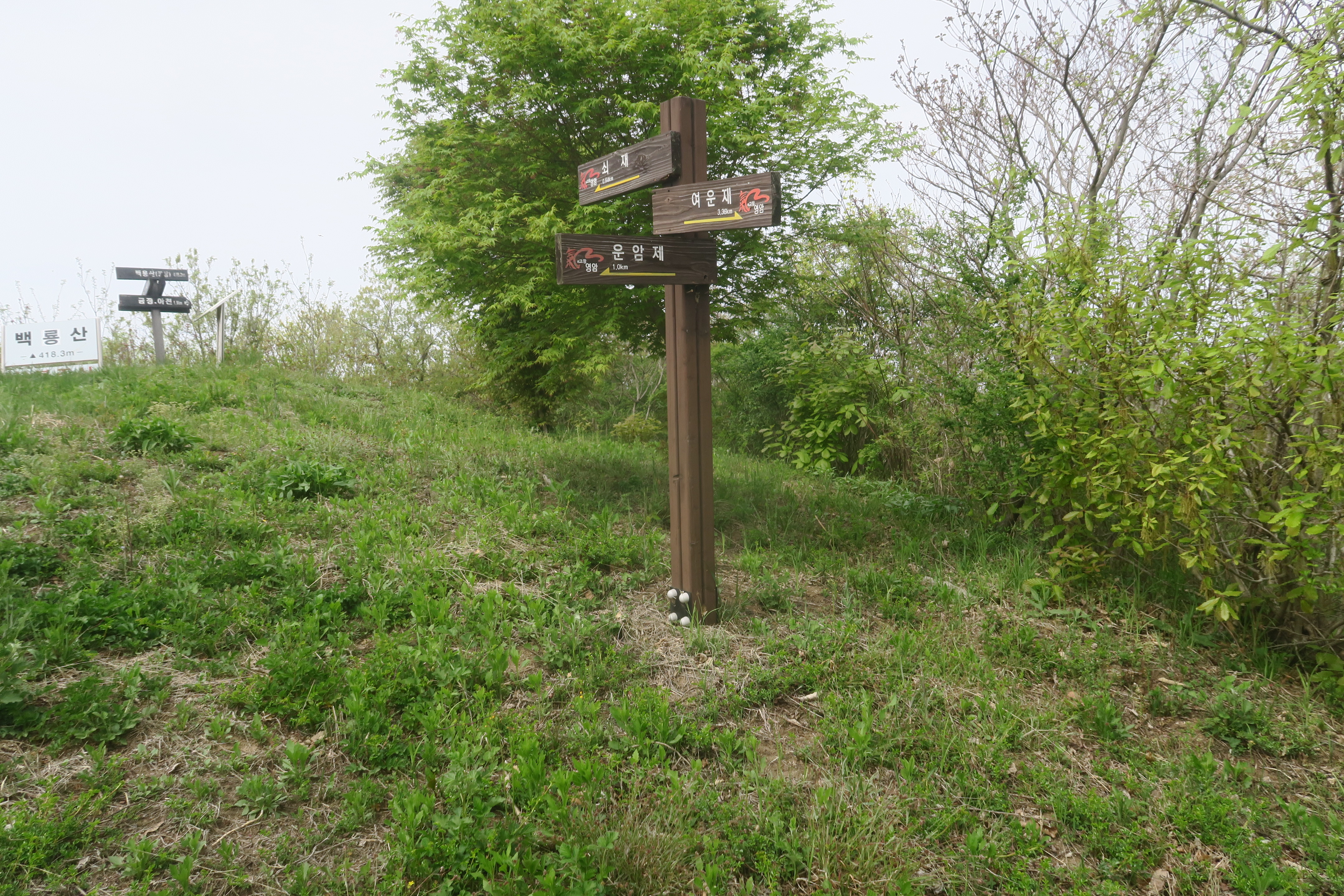 형제봉(288.4m)을 지나 백룡산(420.8m) 에서 다시 남.북쪽 두 갈래로 산줄기가 갈라지는데