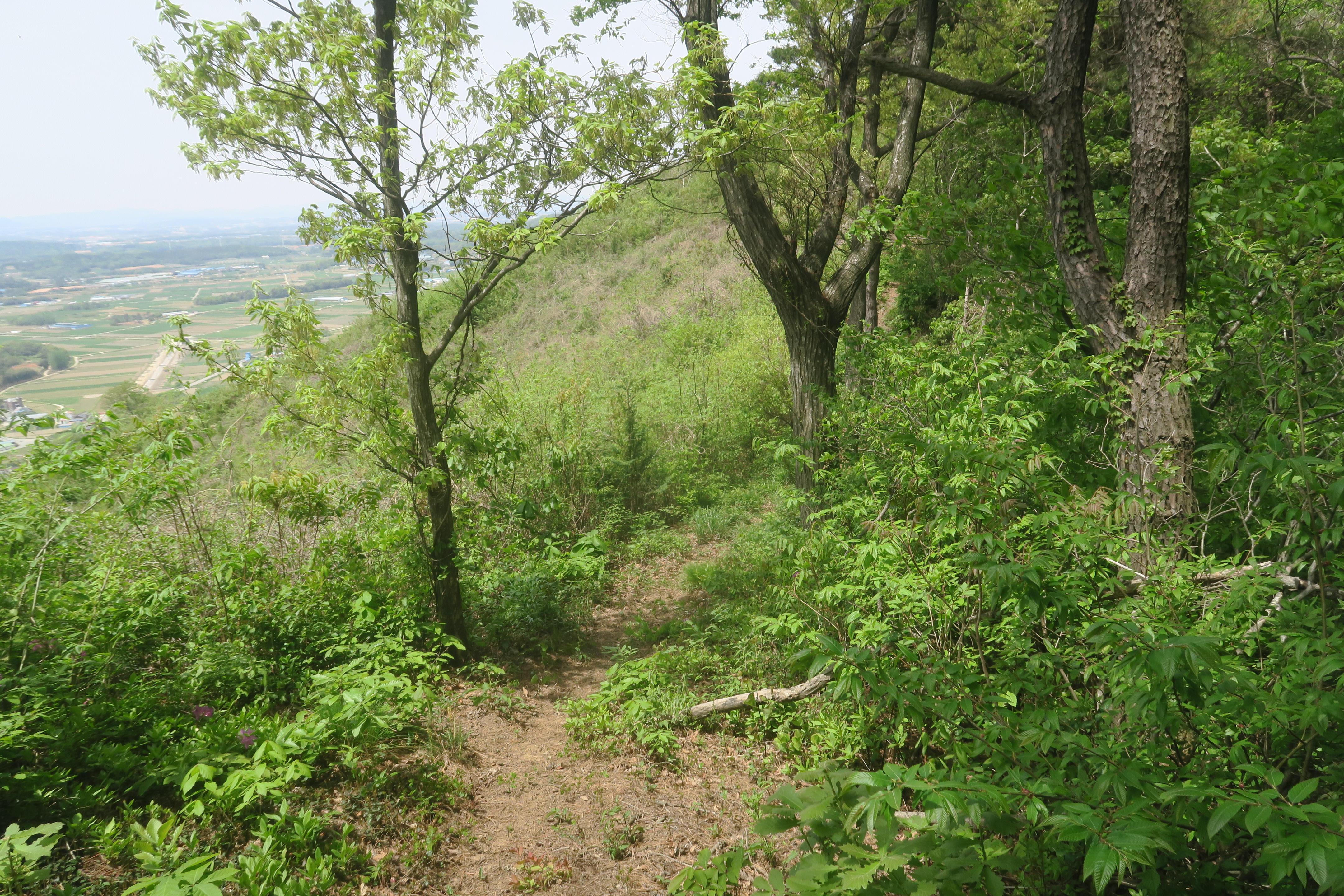안부-장산리 임도-208.4m봉-임도-무명봉-안부-묵밭-고개-121.4m봉