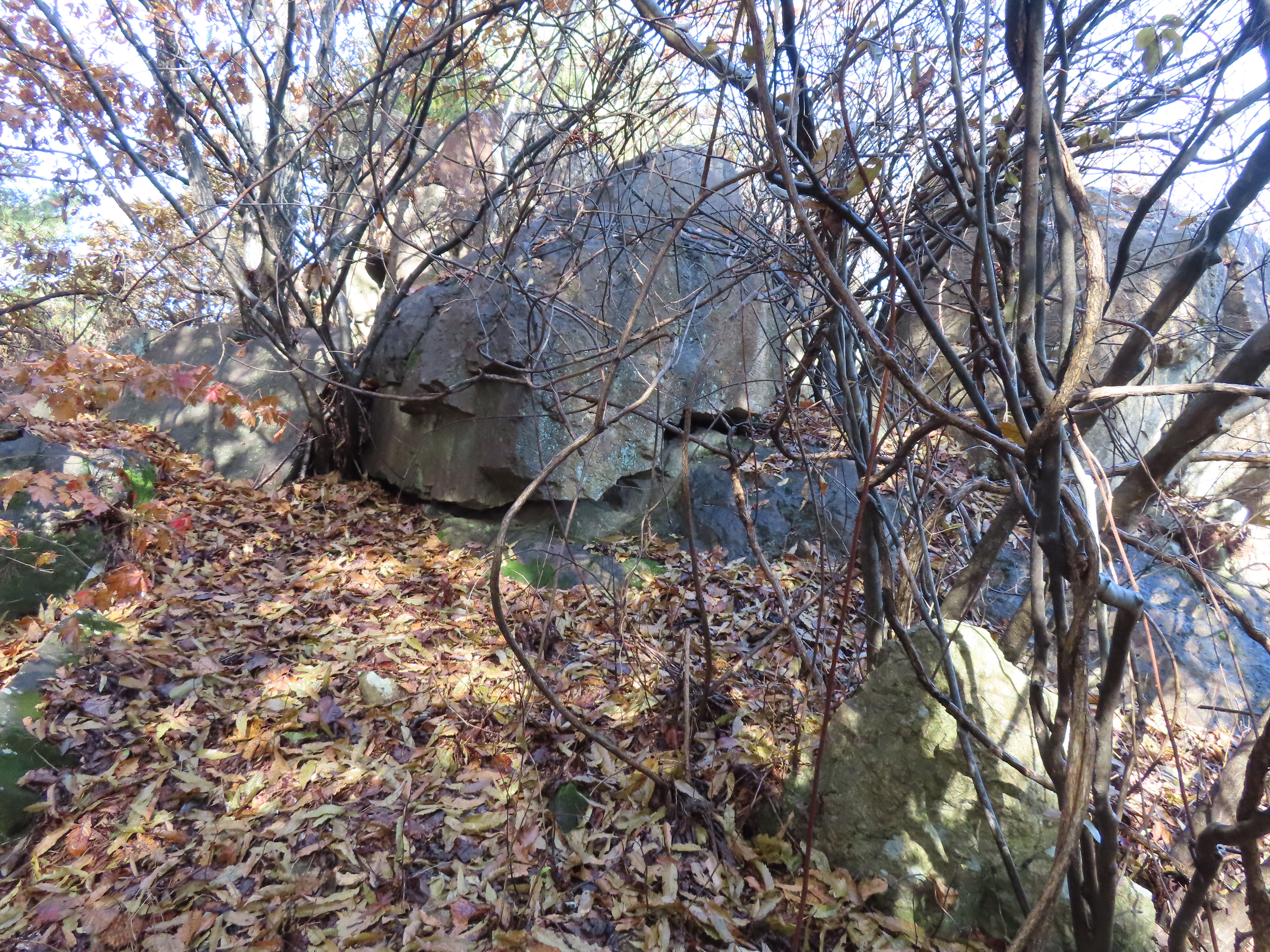 희미한 등로를 따라서 조망바위 좌측으로 가는길에