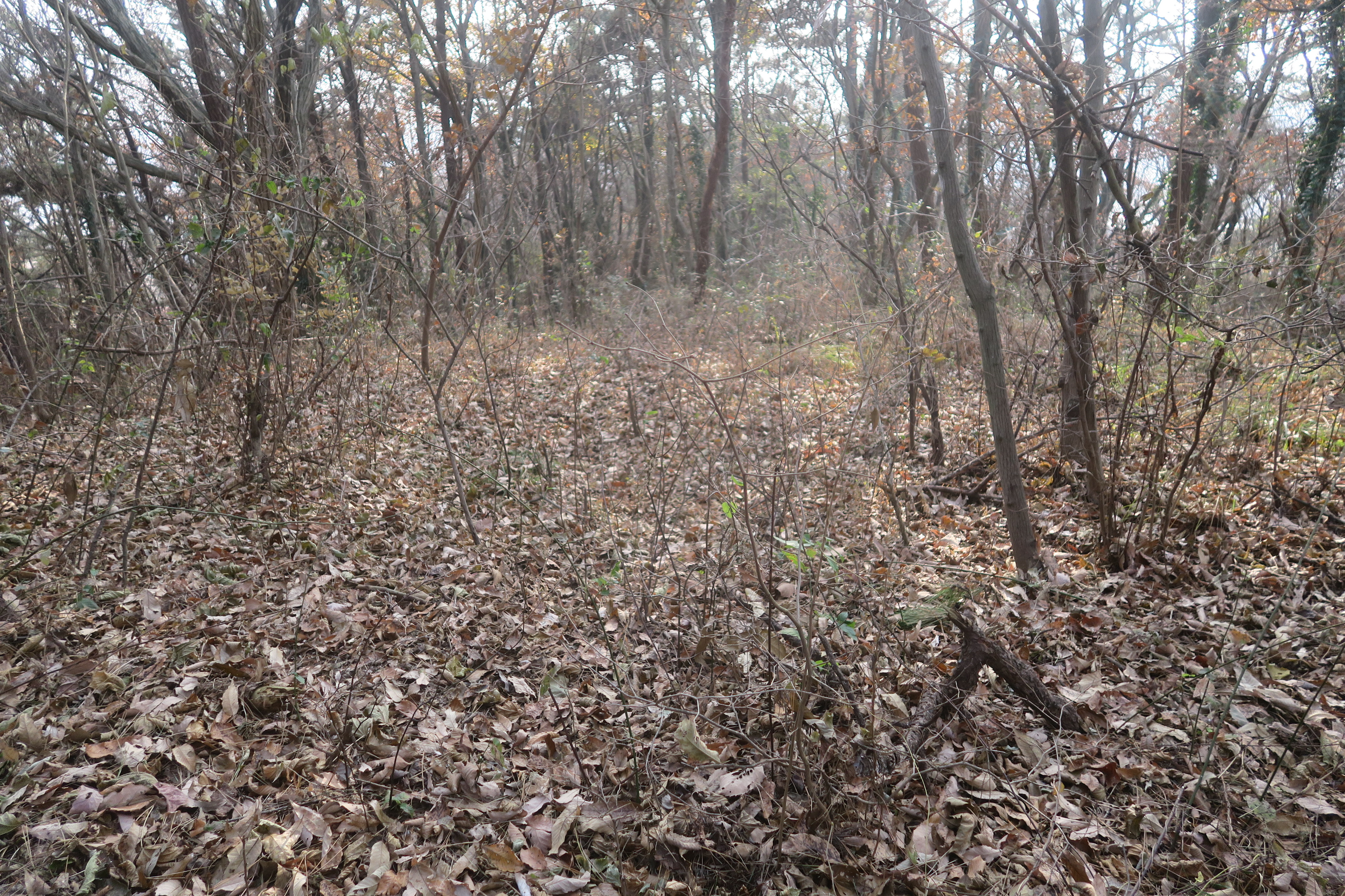 밭을 정리하면서 마구 버려진 잡목들이 길을 막는다