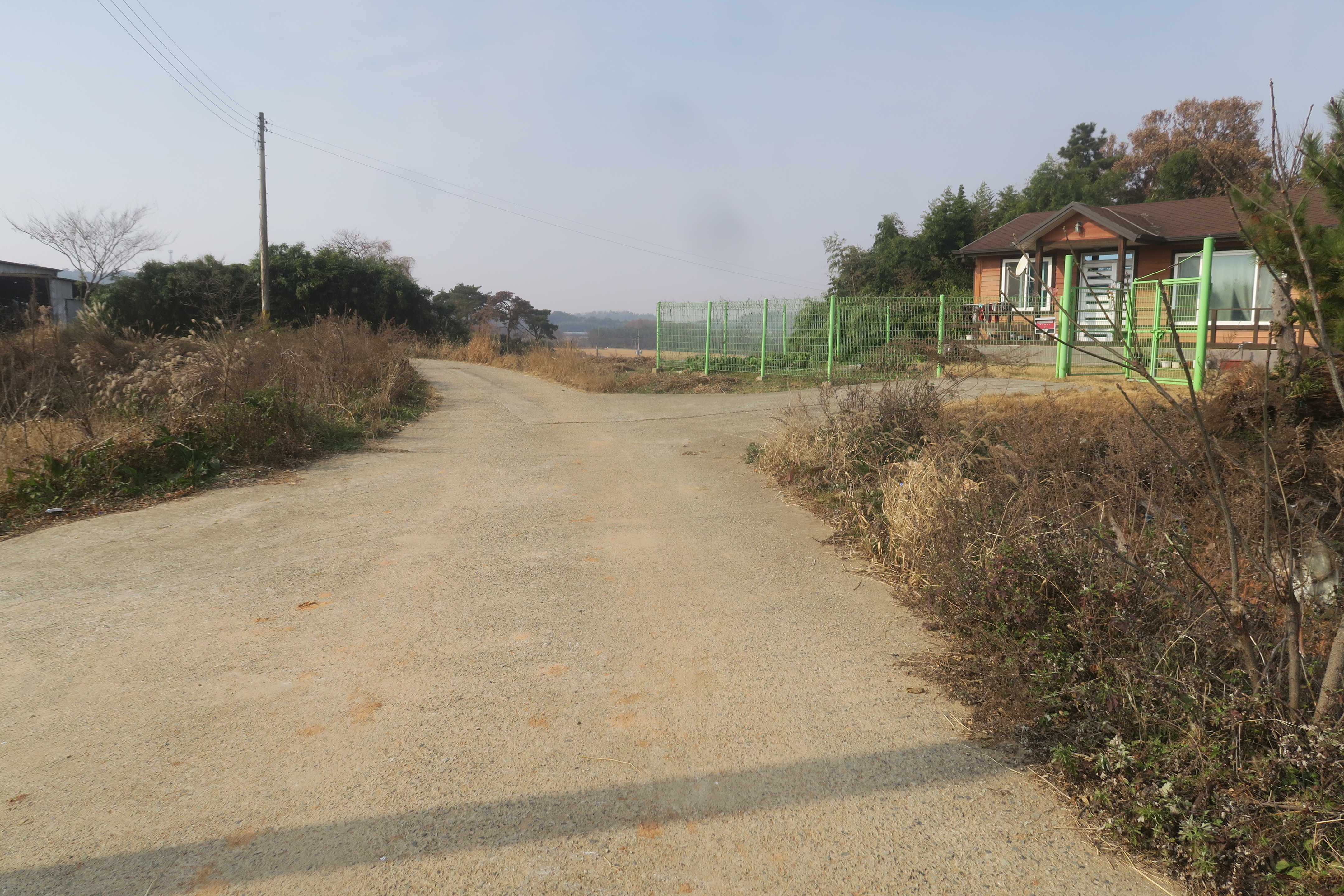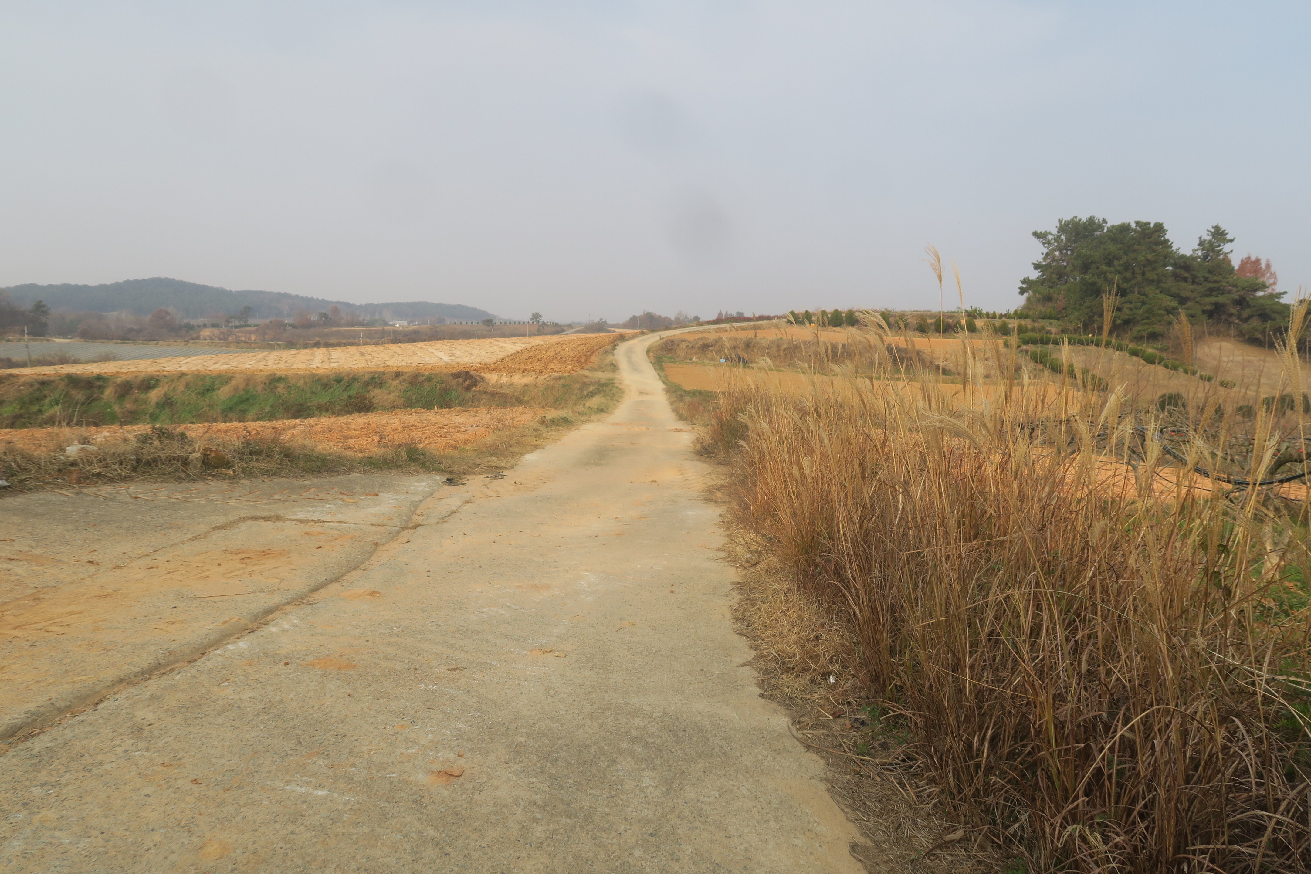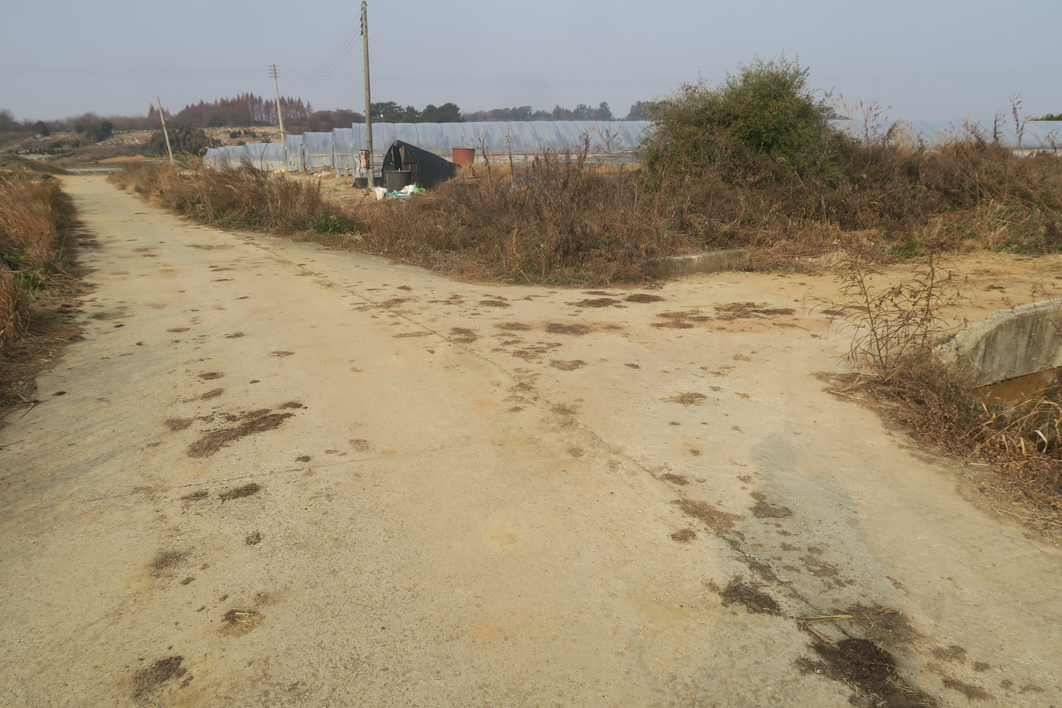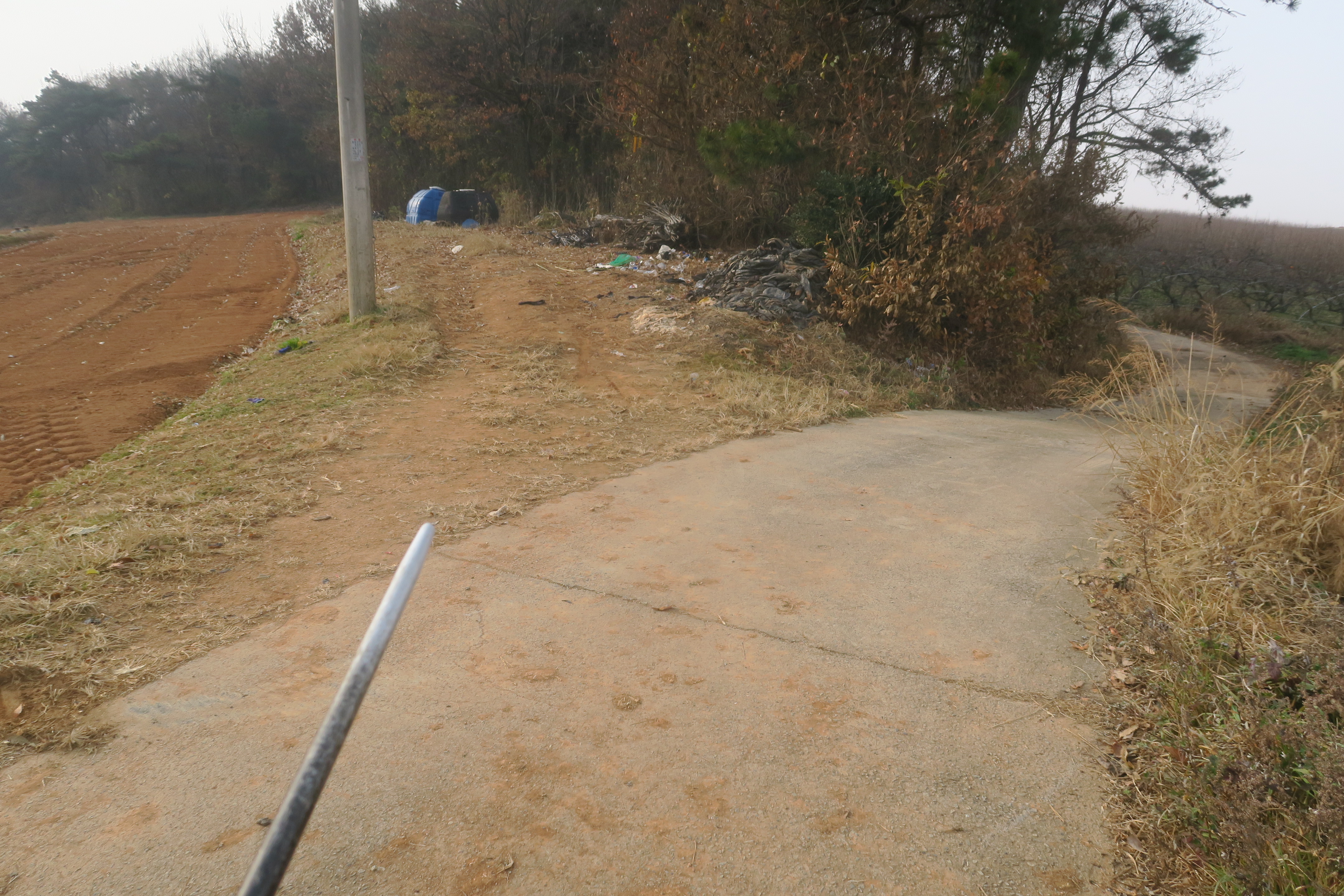 수확한 밭을 지나 시멘트 농로로 내려선다