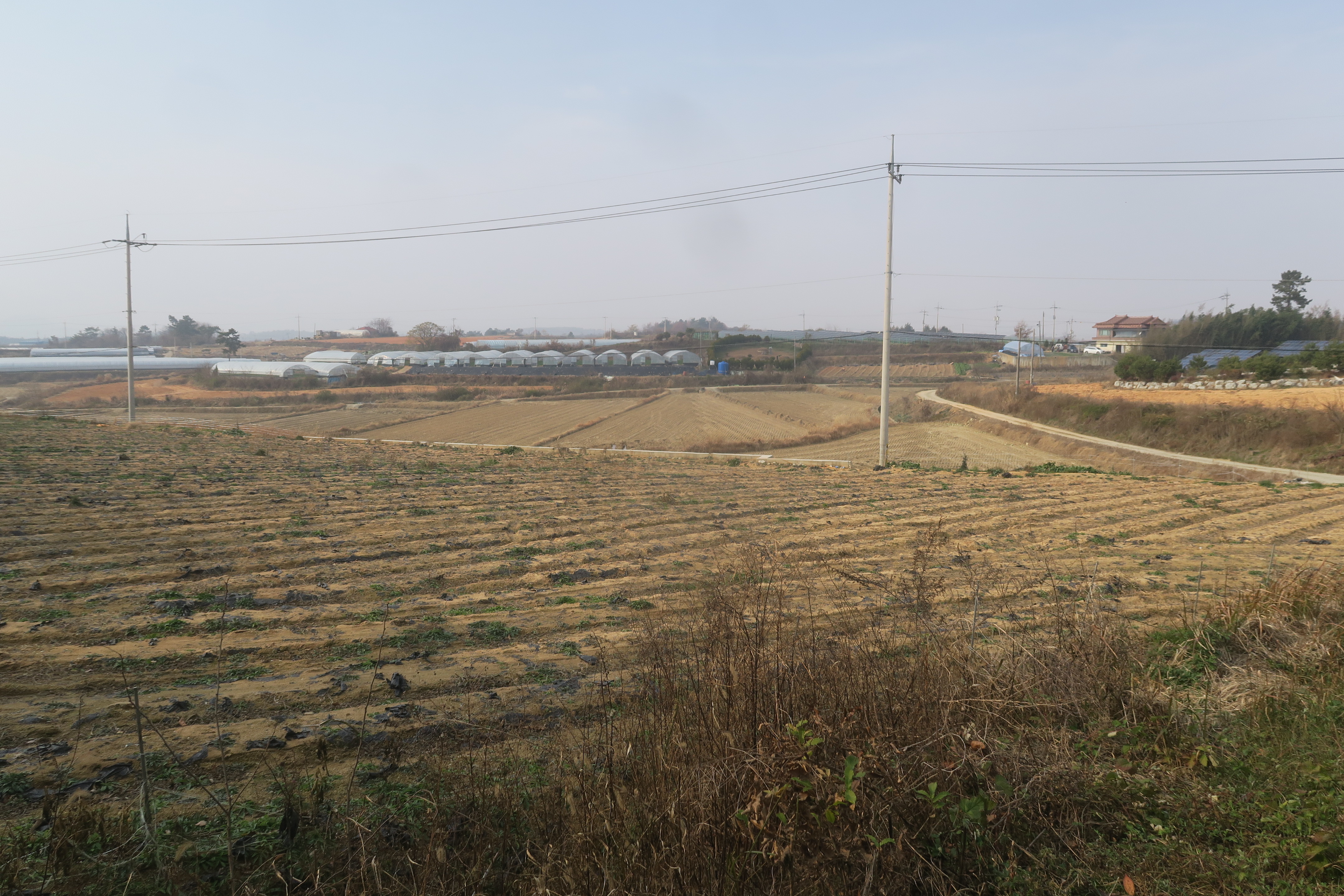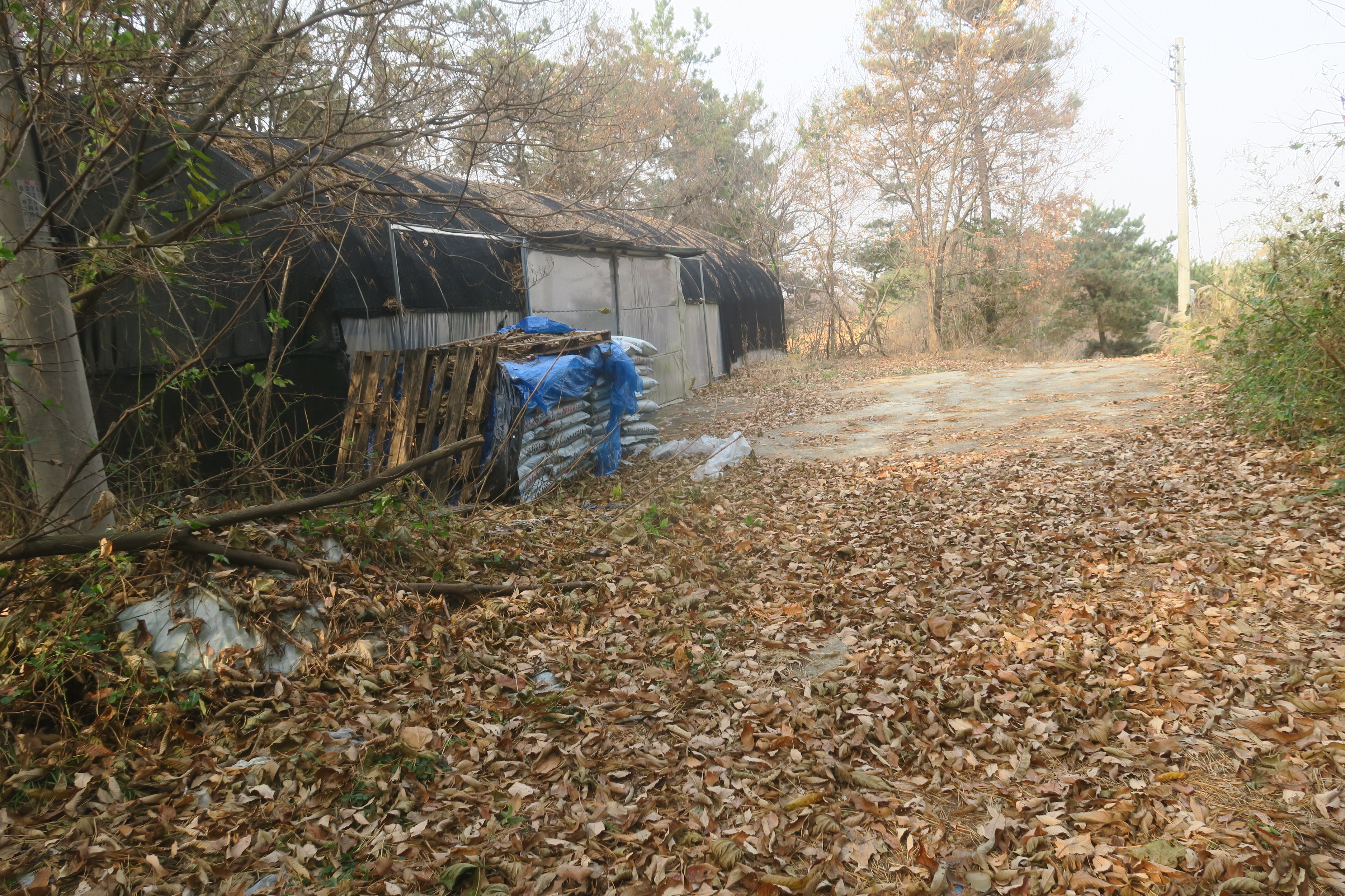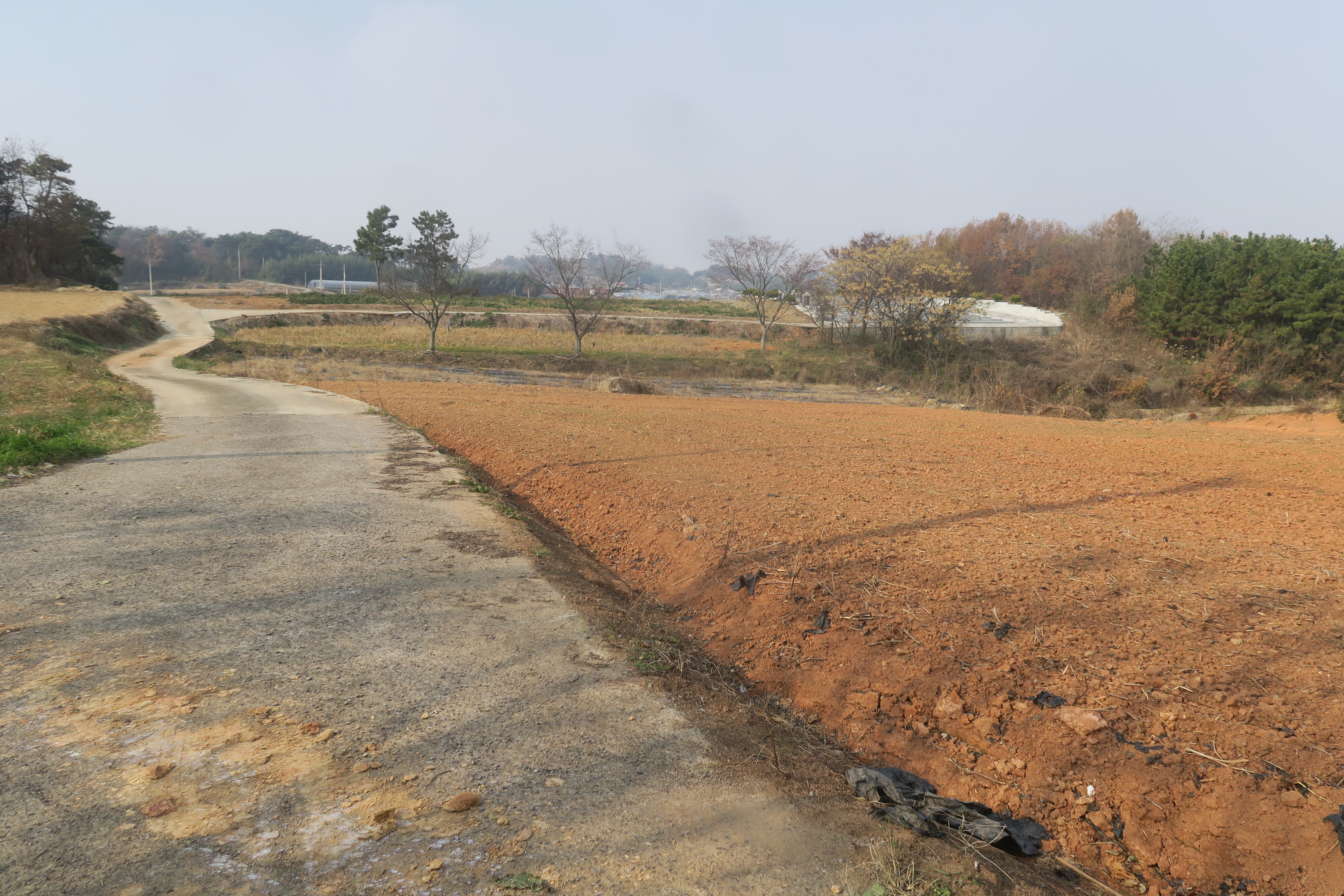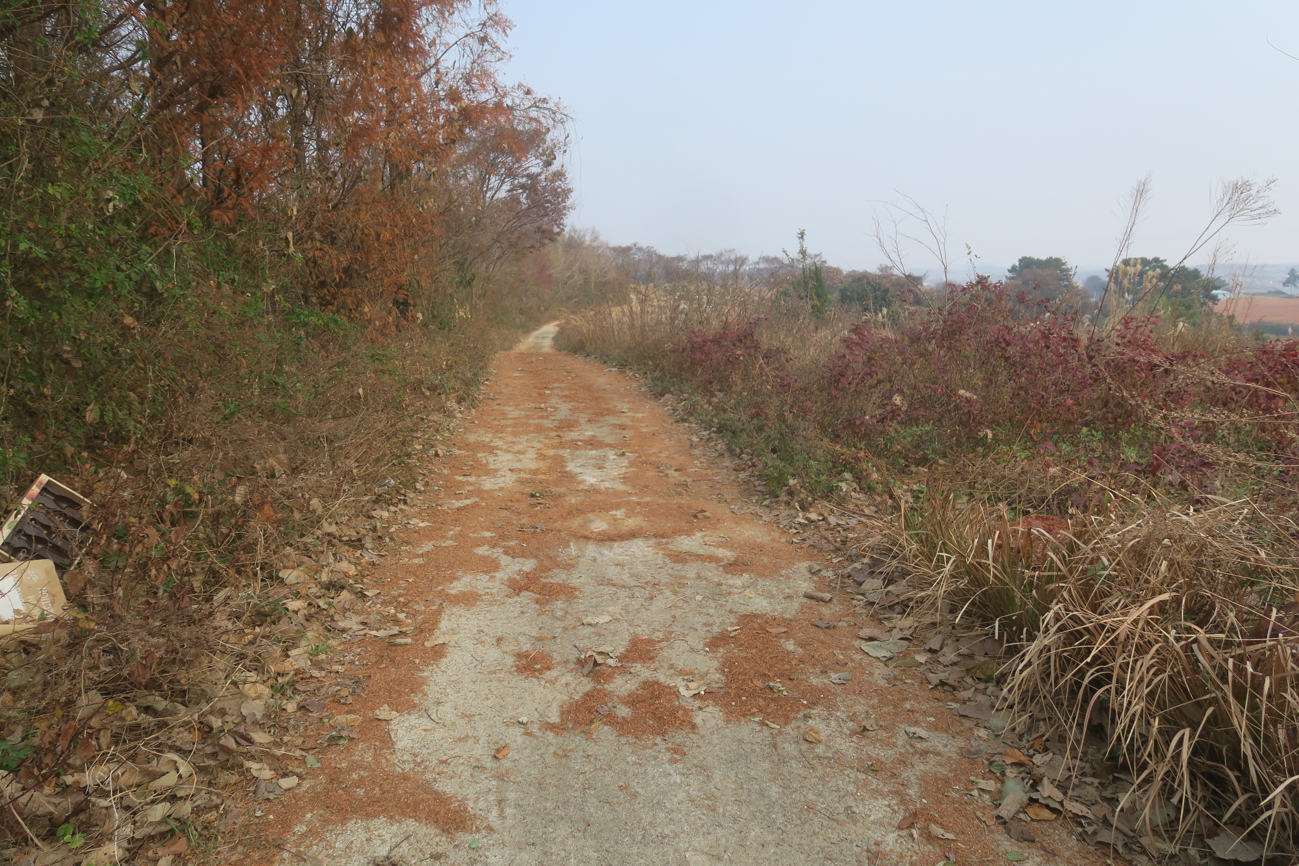 수확한 밭을 지나 시멘트 농로로 내려선다