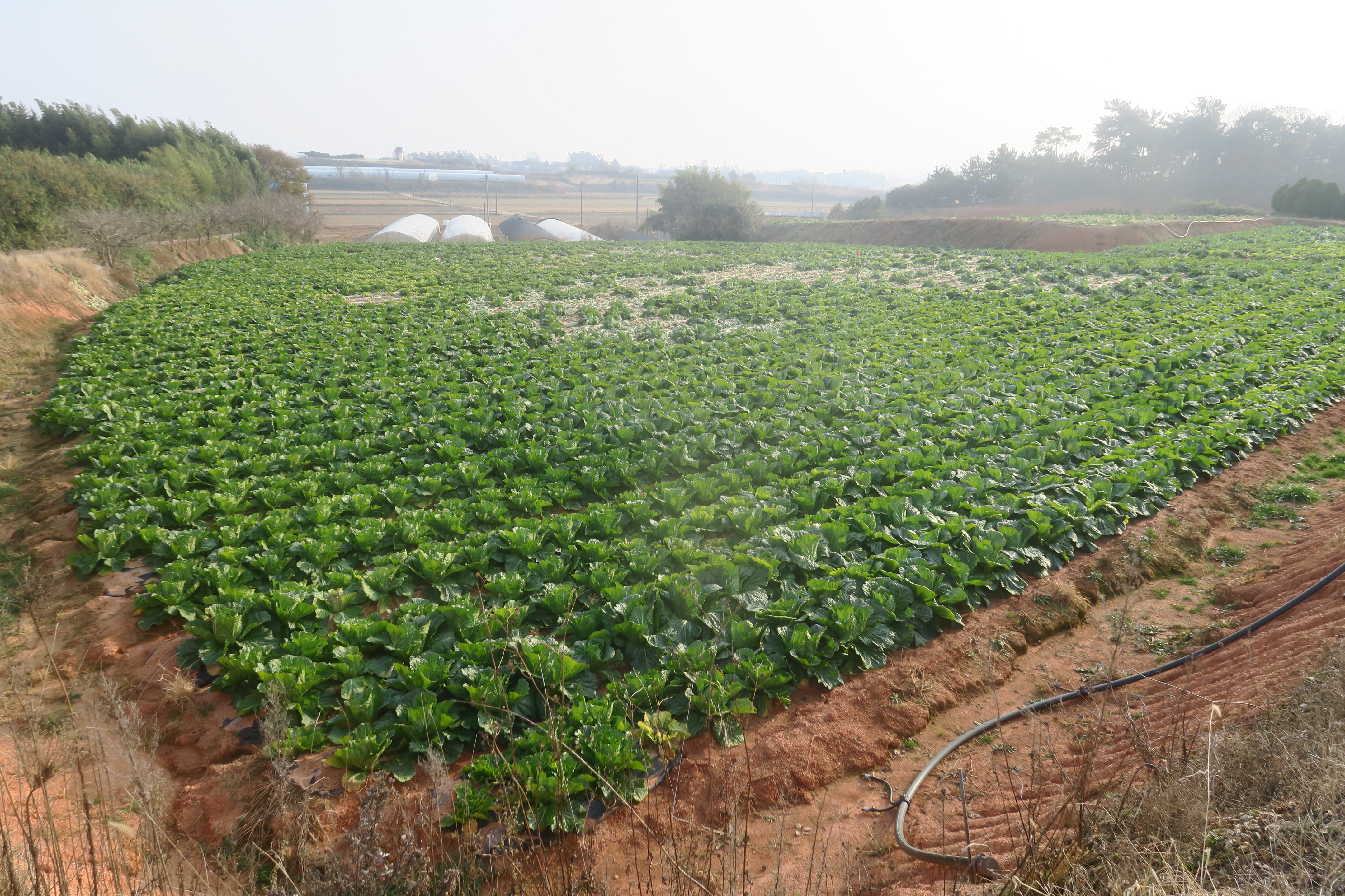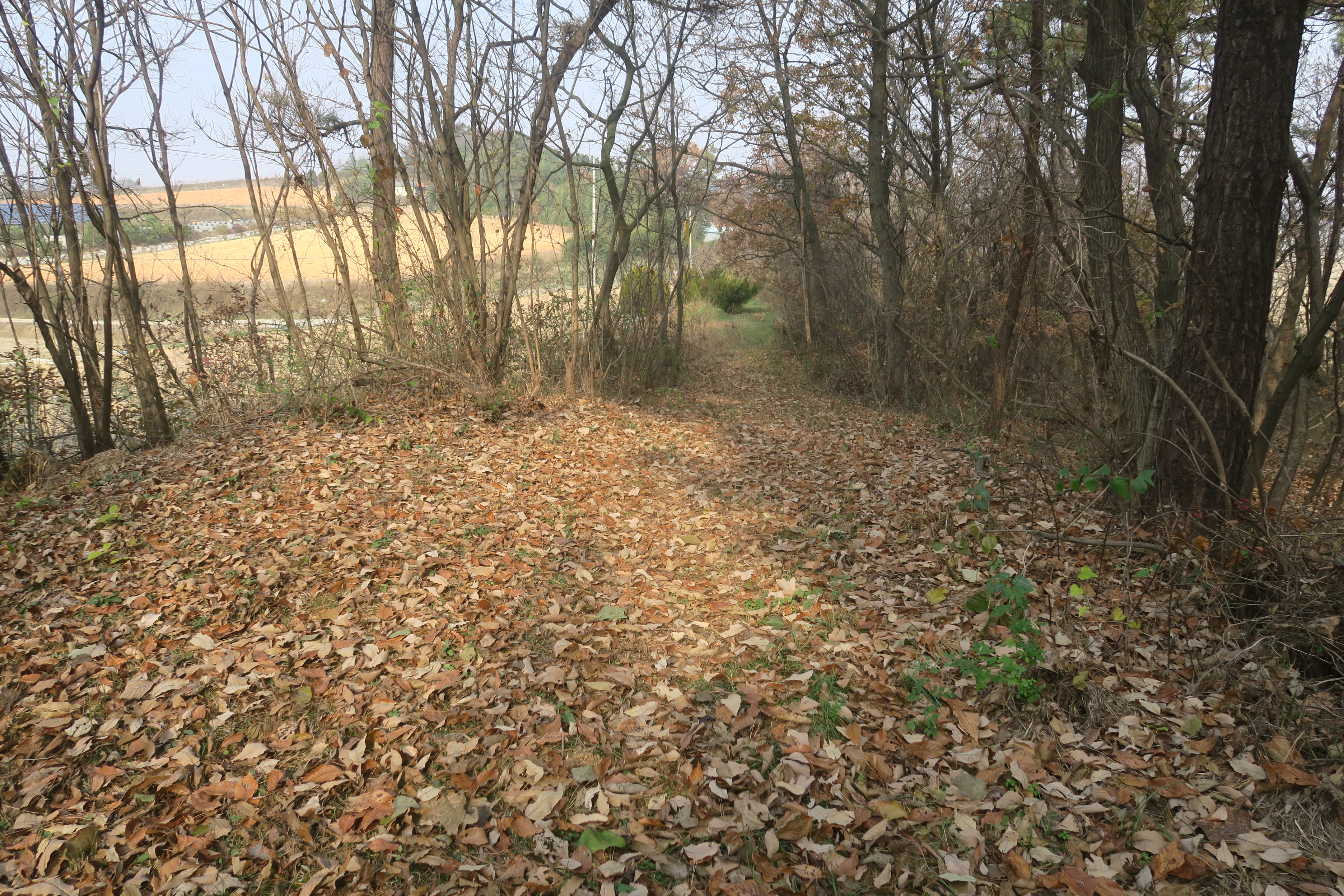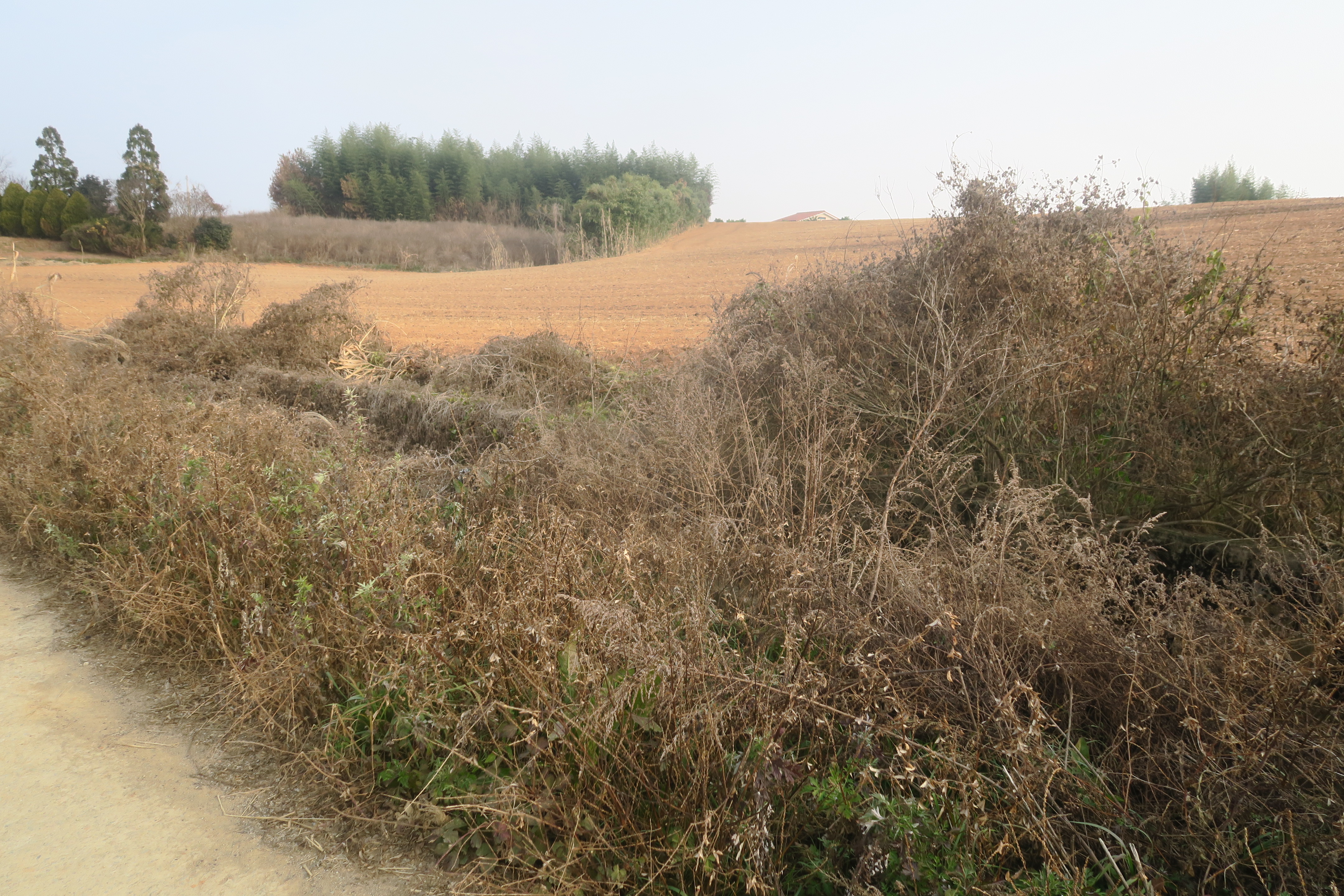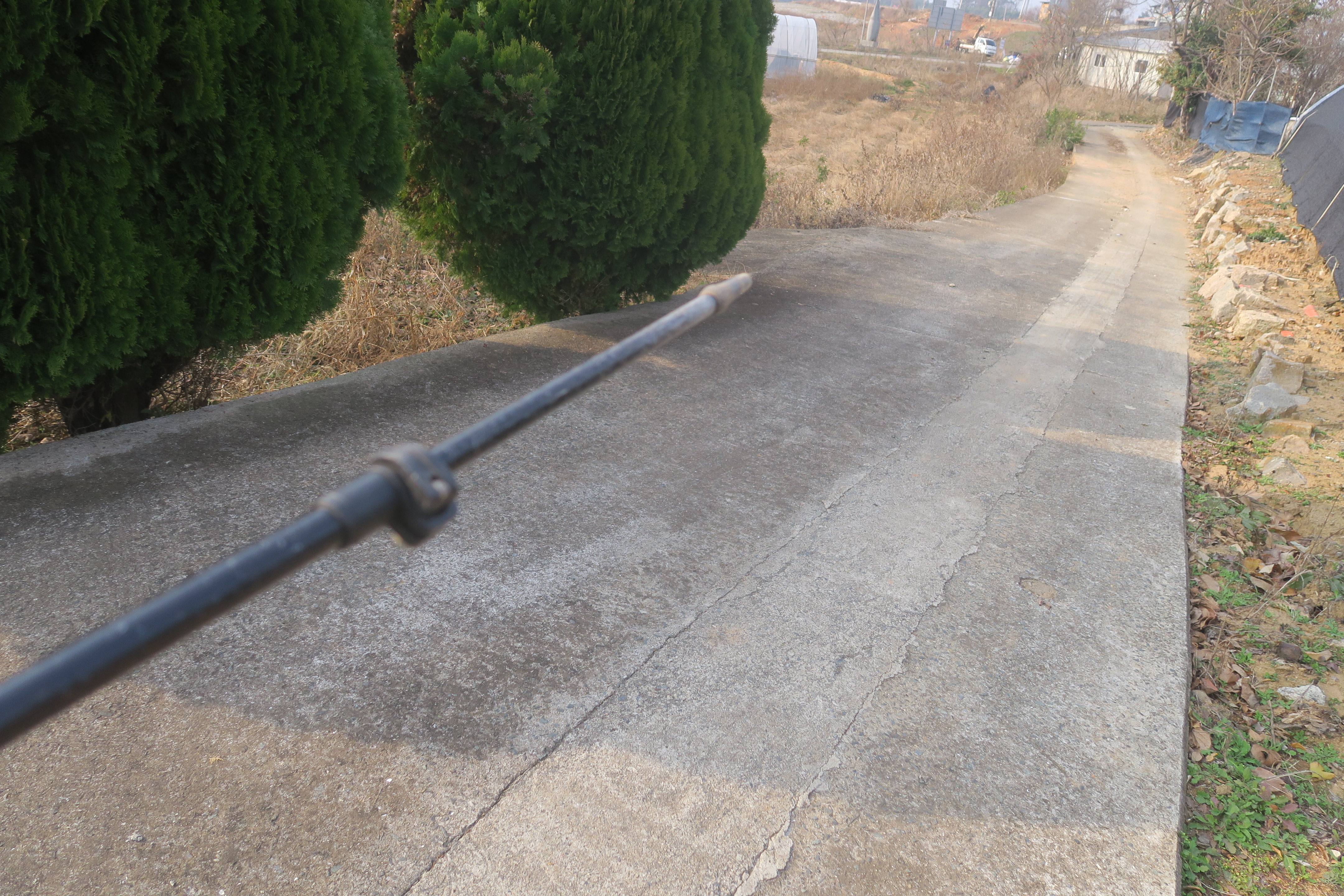 수확한 밭을 지나 시멘트 농로로 내려선다