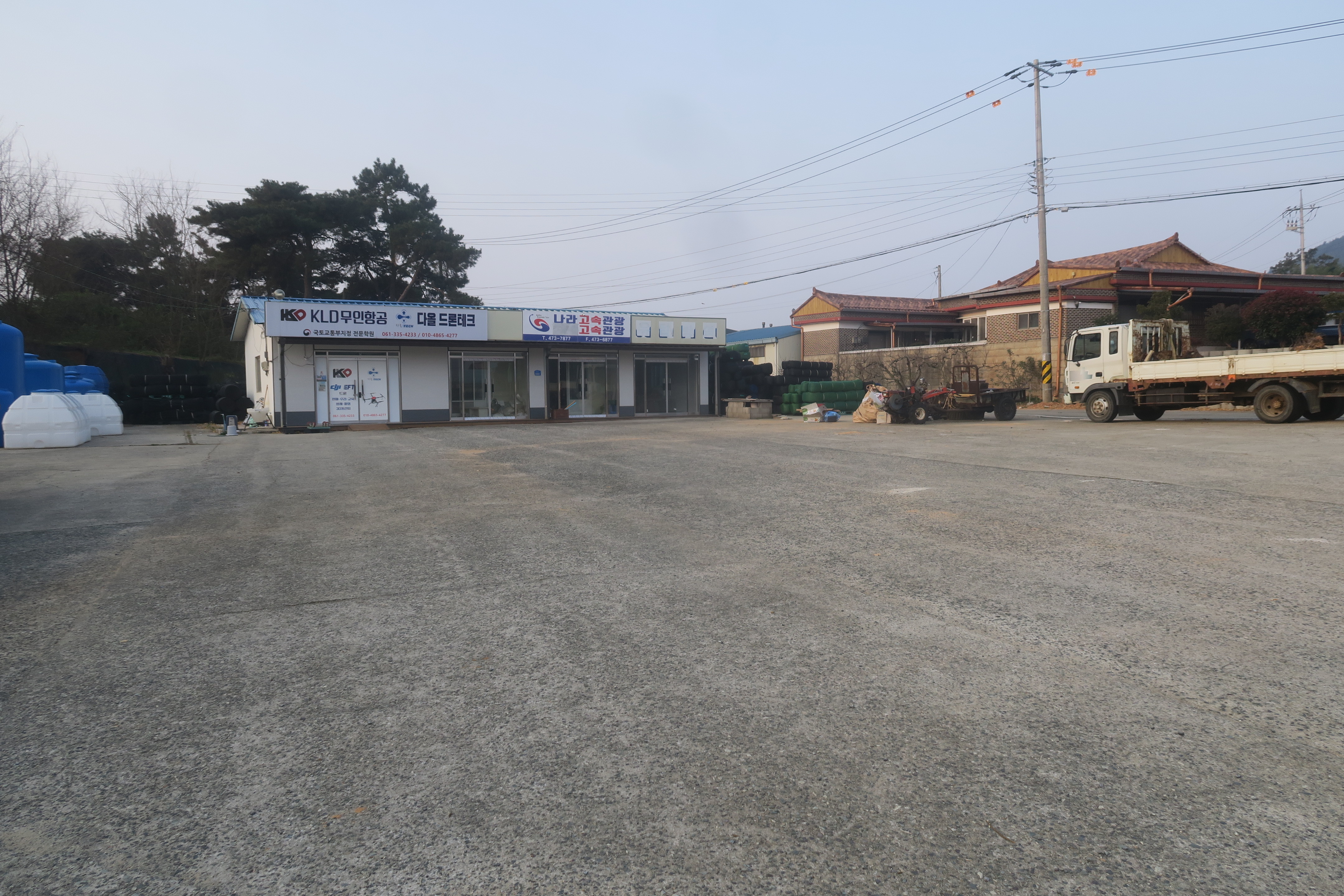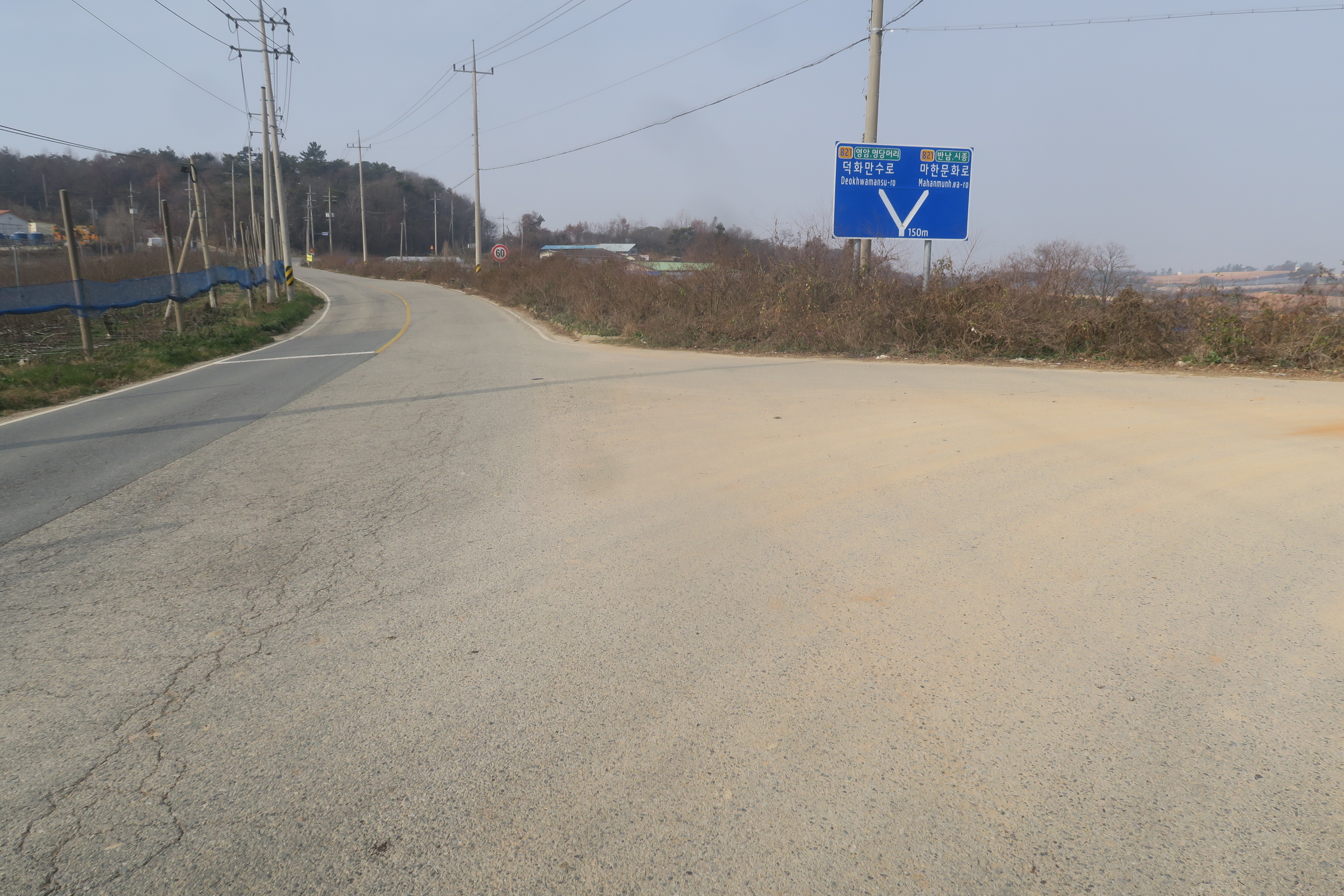 영암웰빙이라는 건물을 바라보면서 개설중인 도로를 가로 지른다