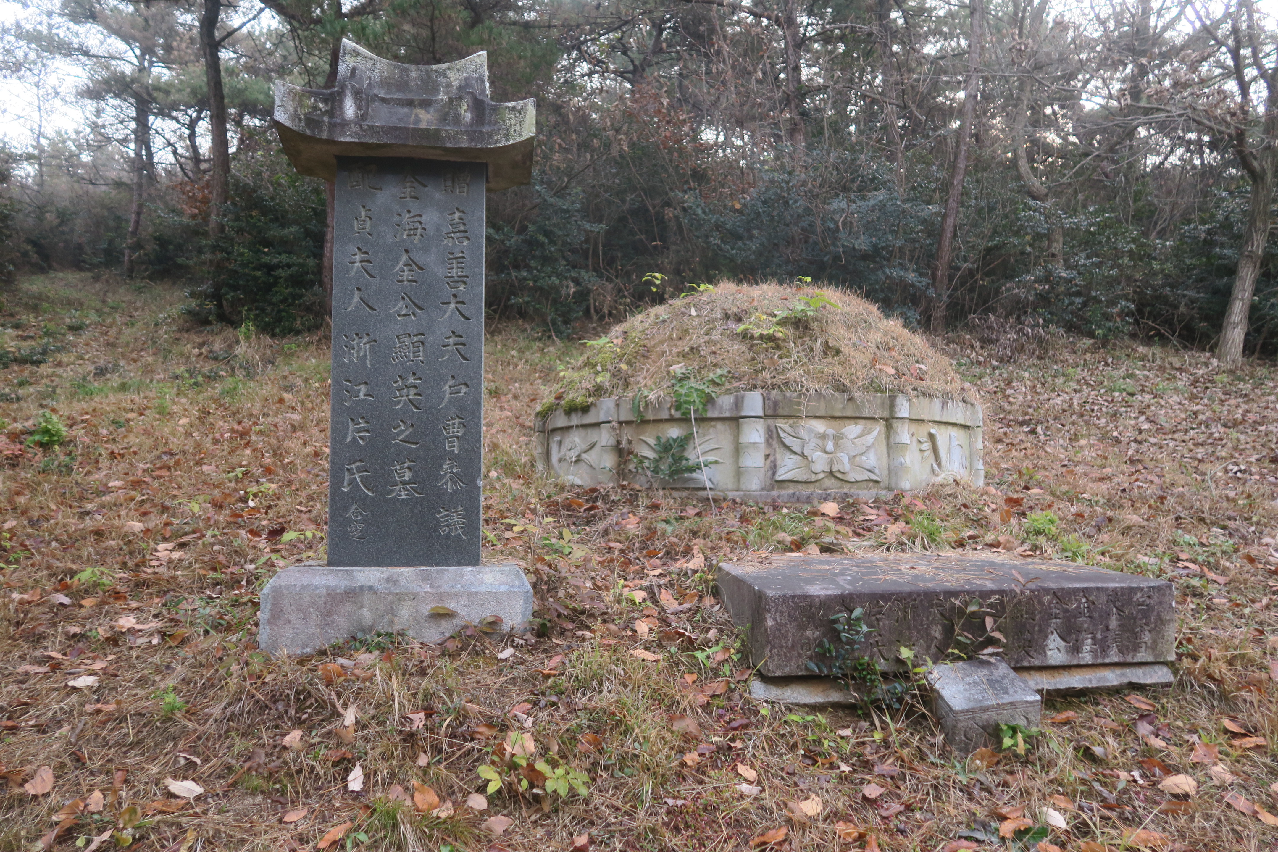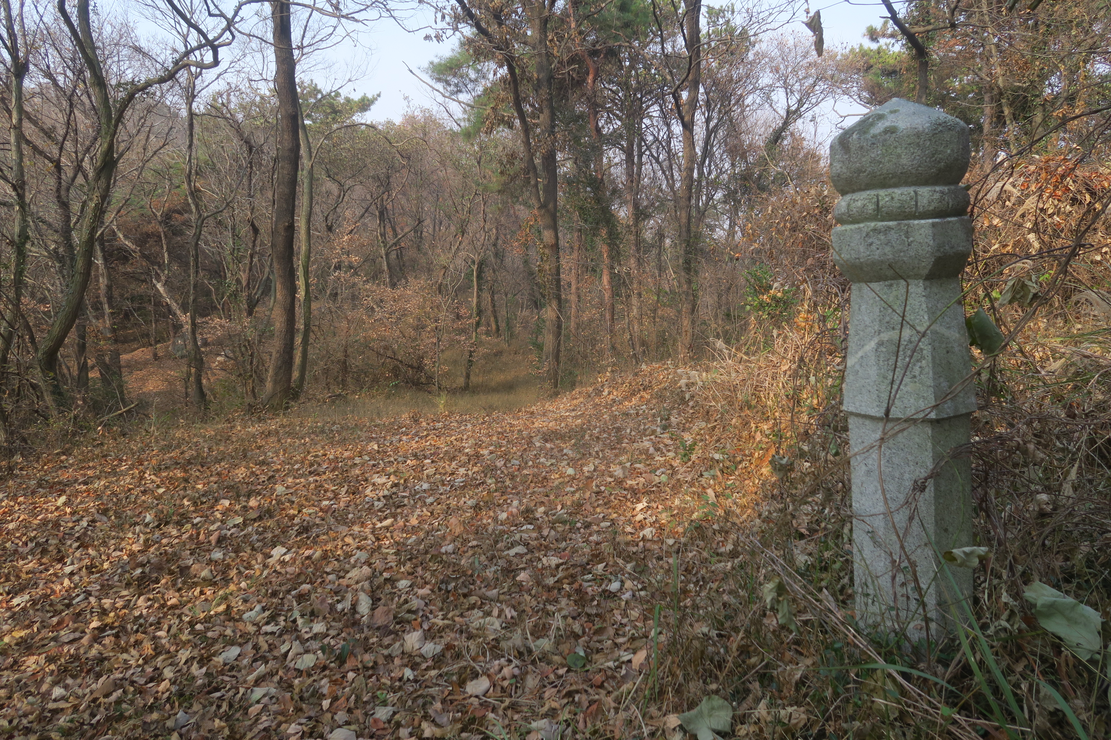 잡목의 저항을 헤치고 올라서니 김해김씨 세장산비가