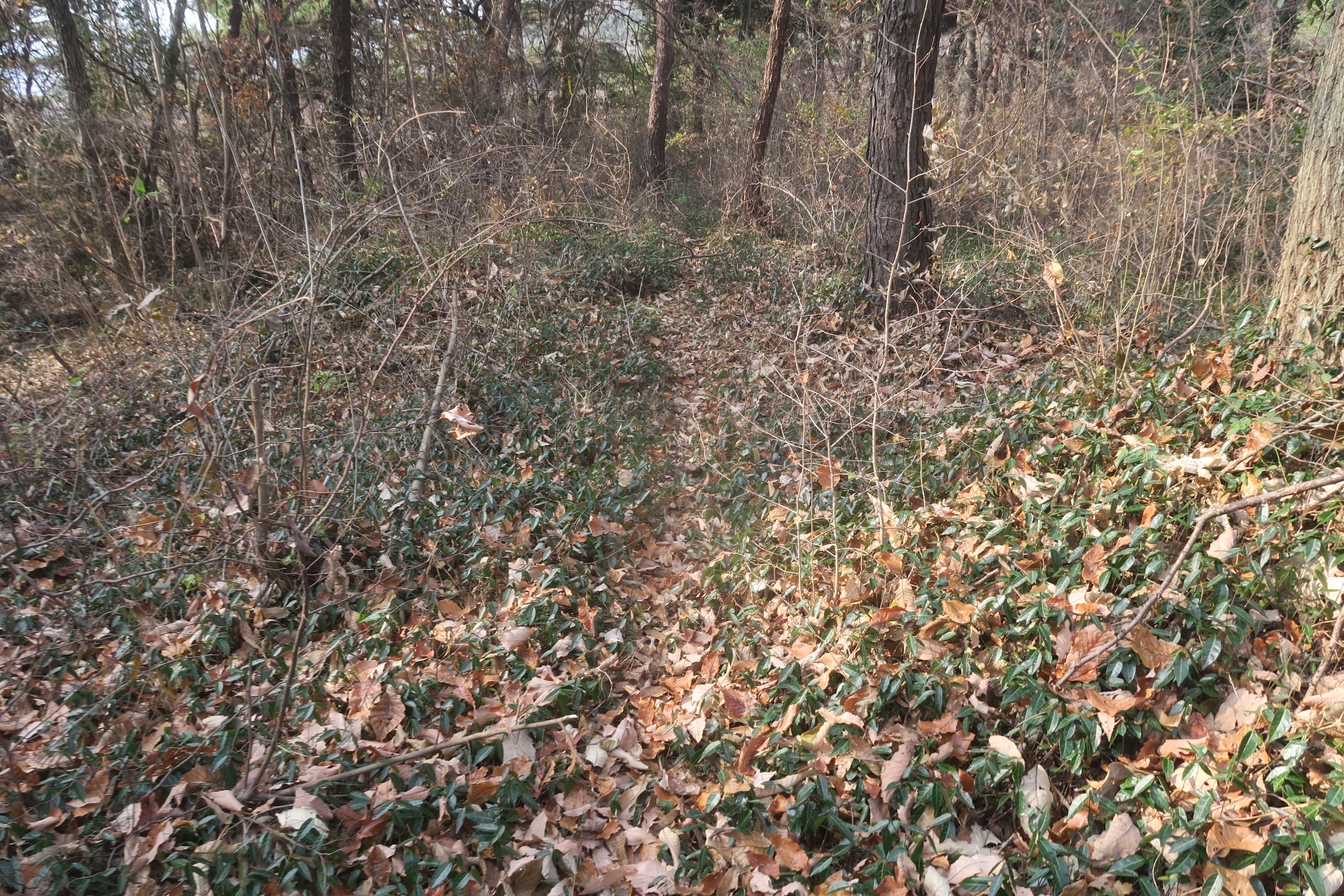 다시 편안한 등로가 보이고 동백이 군락을 헤치고 있는