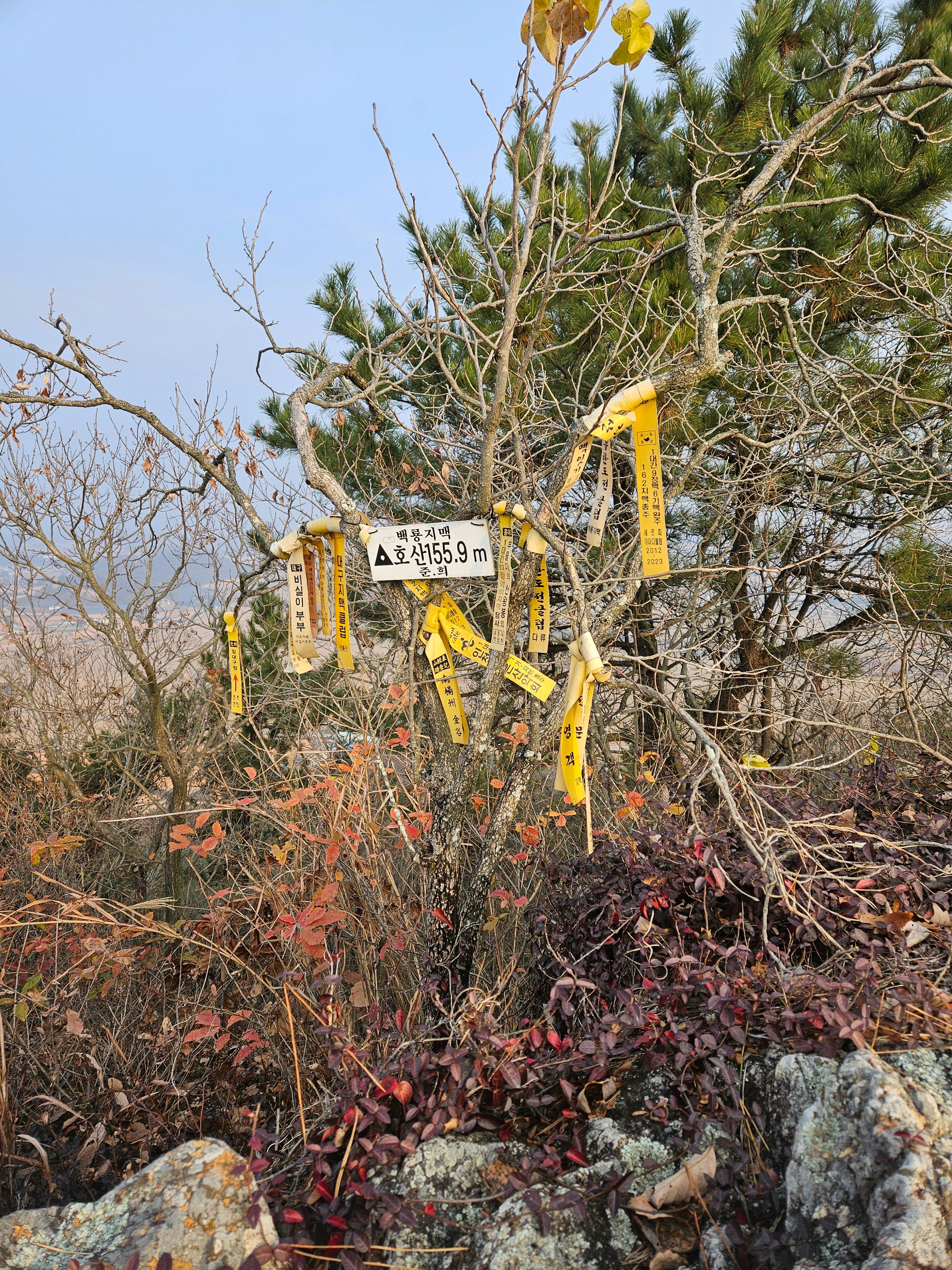 안되지만 오늘 산행중에 가장 높은 산으로 정상에는 준.희쌤의 산패와 주렁주렁