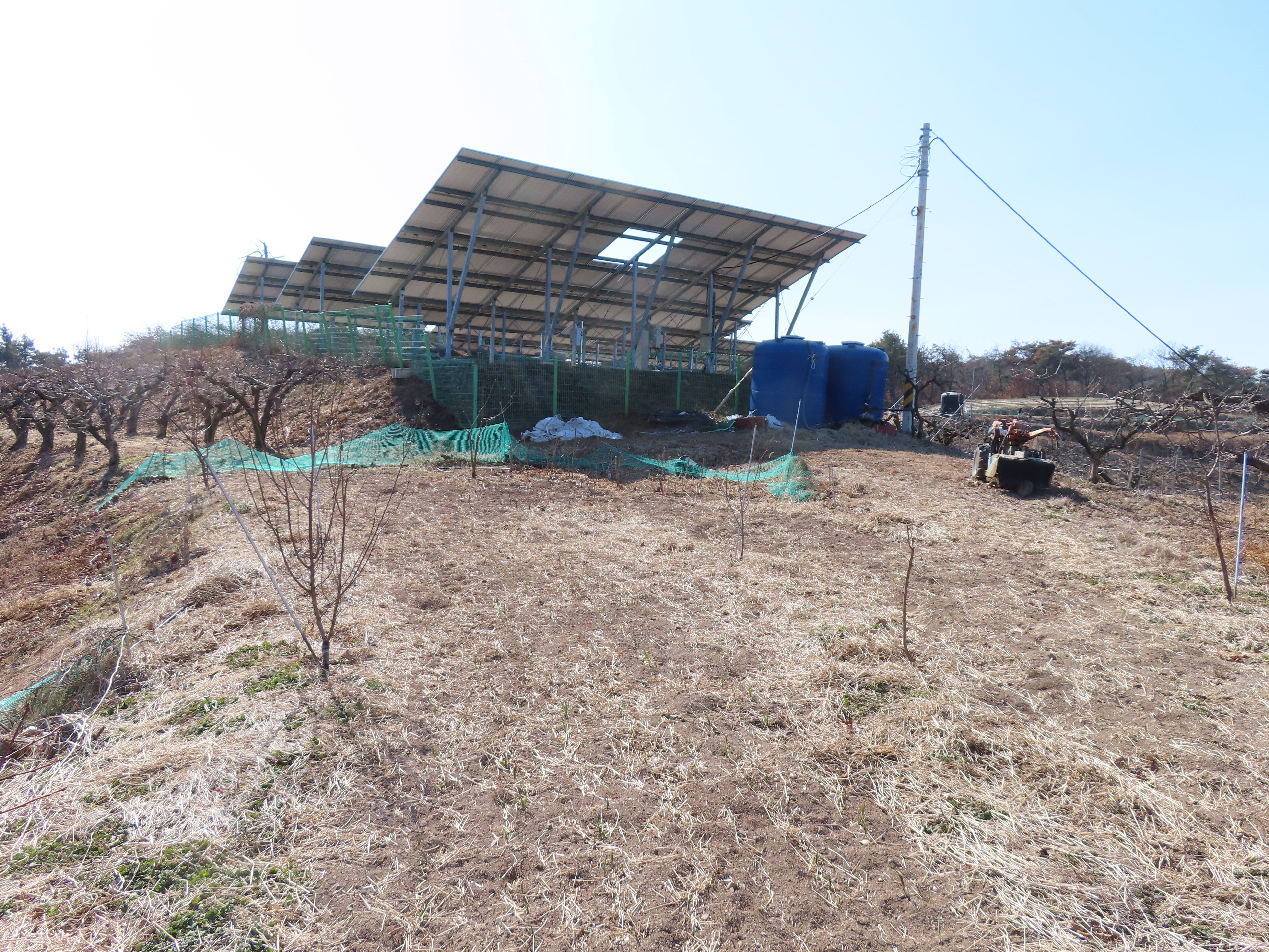좌측의 나뭇가지 사이로 대합면 내울리 천왕 저수지가